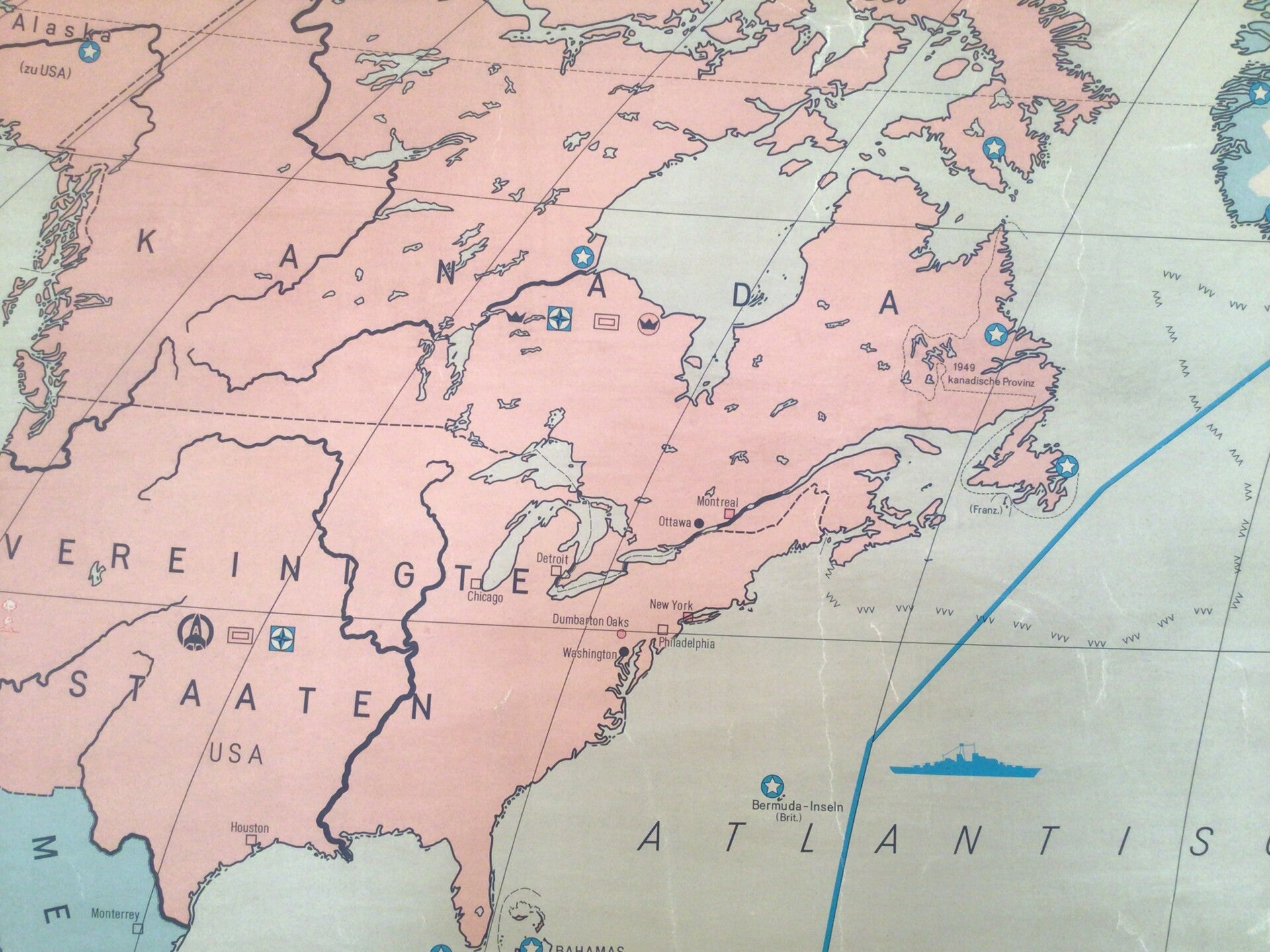 Oude Schoolkaart Wereldkaart (Die Welt 1945-1975) Alleen ophalen