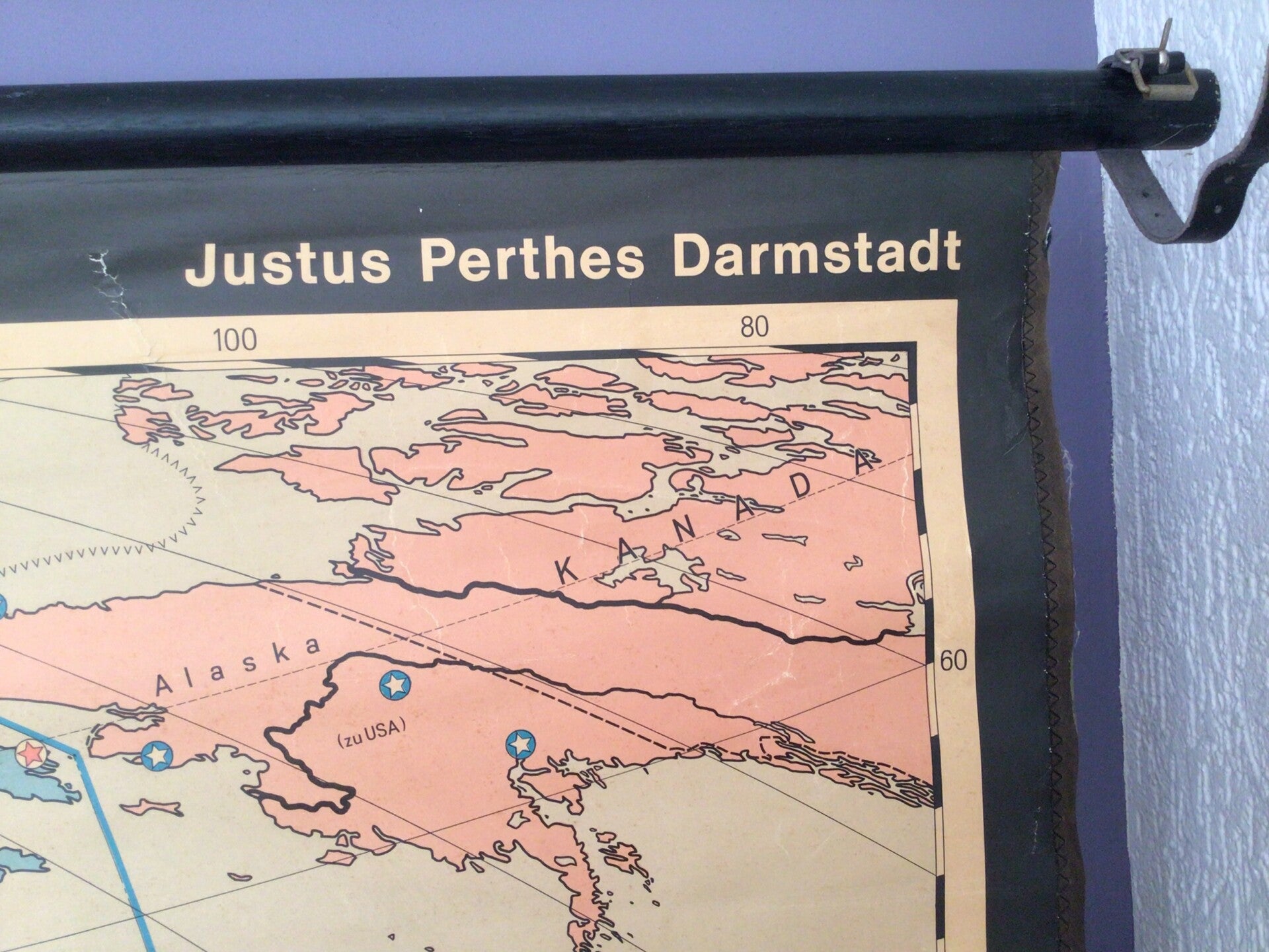 Oude zeer grote kaart Duitse kaart van Hilgermann-Kettermann op linnen en oprolbaar op stokken.