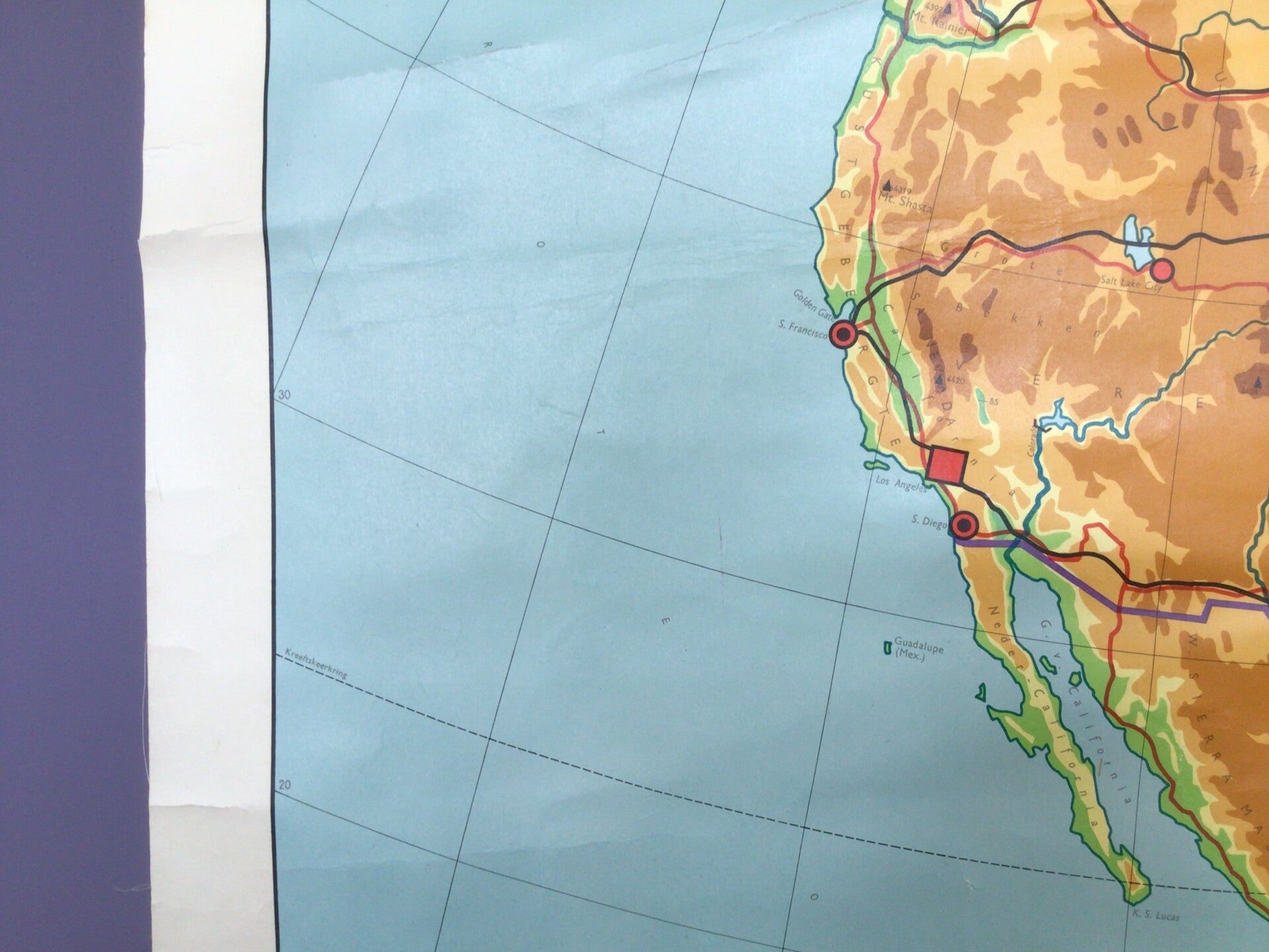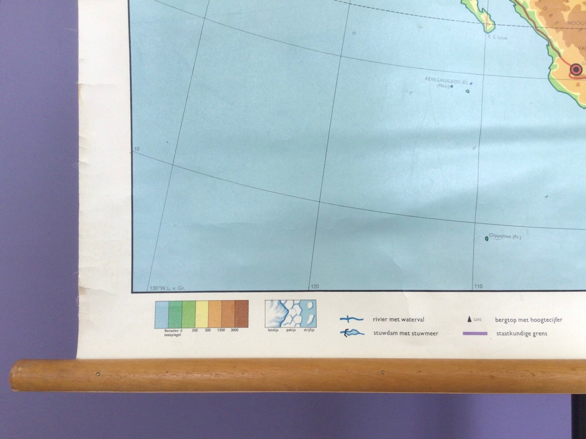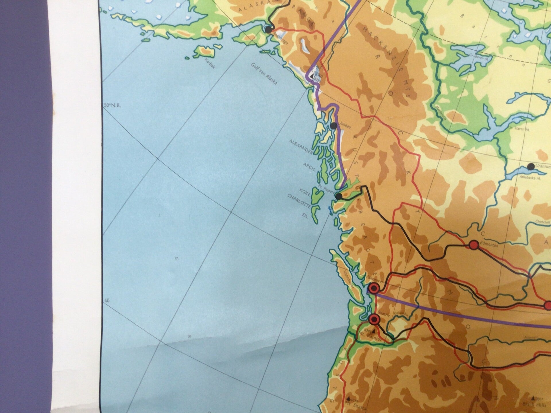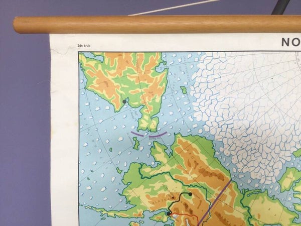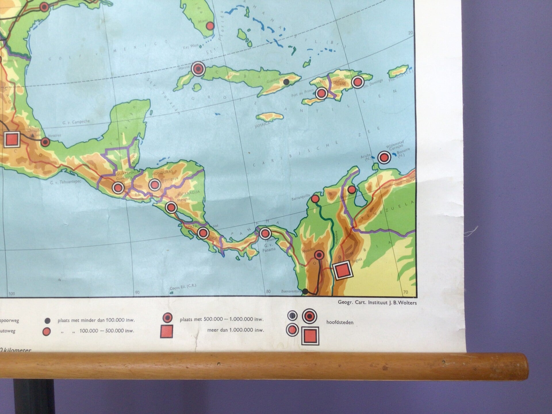 Mooie gedetailleerde kaart van Geogr. Cart. Inst. Wolters-Noordhoff op linnen en oprolbaar op stokken.