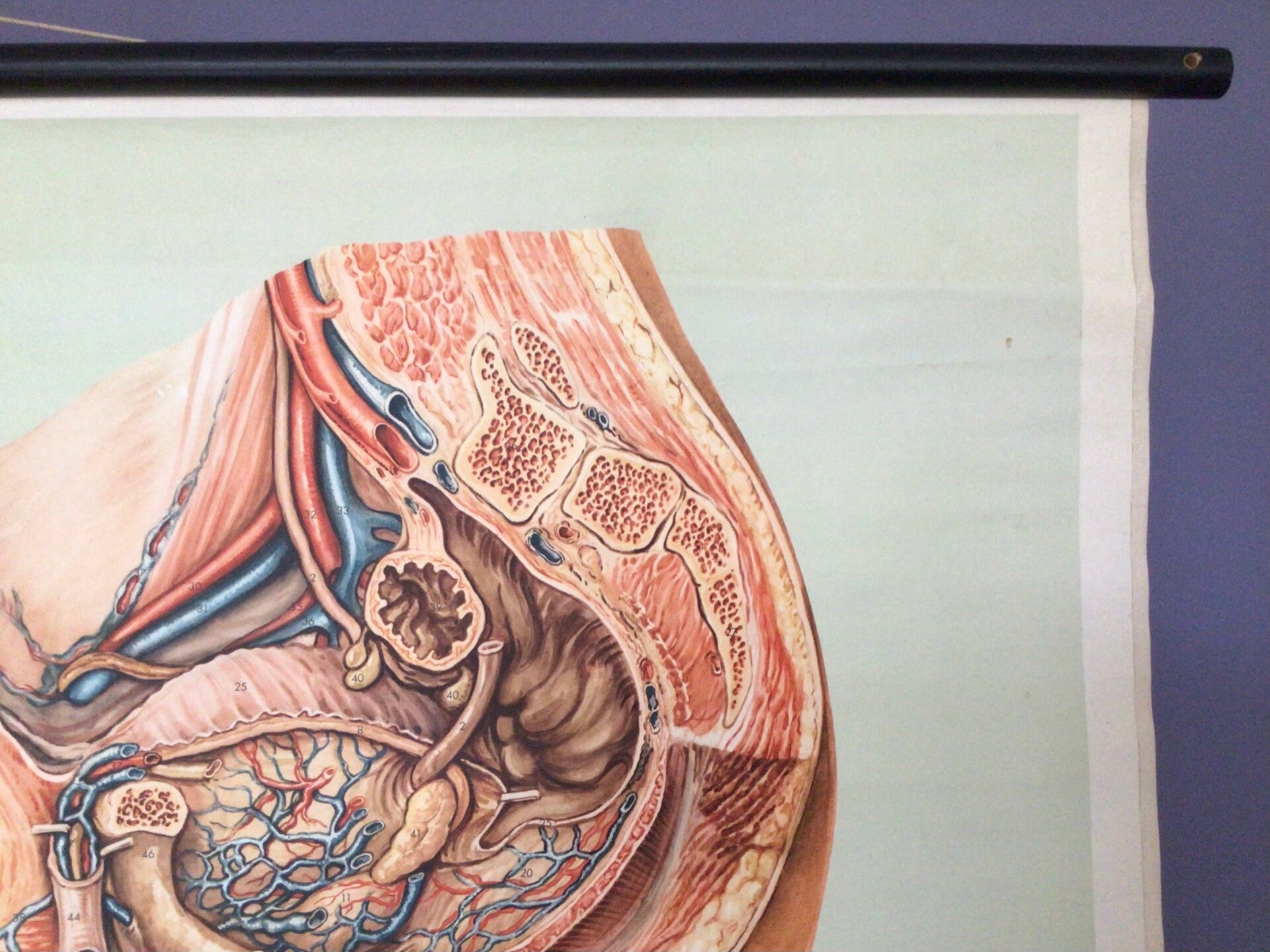 Informatieve kaart uitgegeven door het Deutsches Hygiëne Museum, gedrukt op linnen en oprolbaar met stokken.