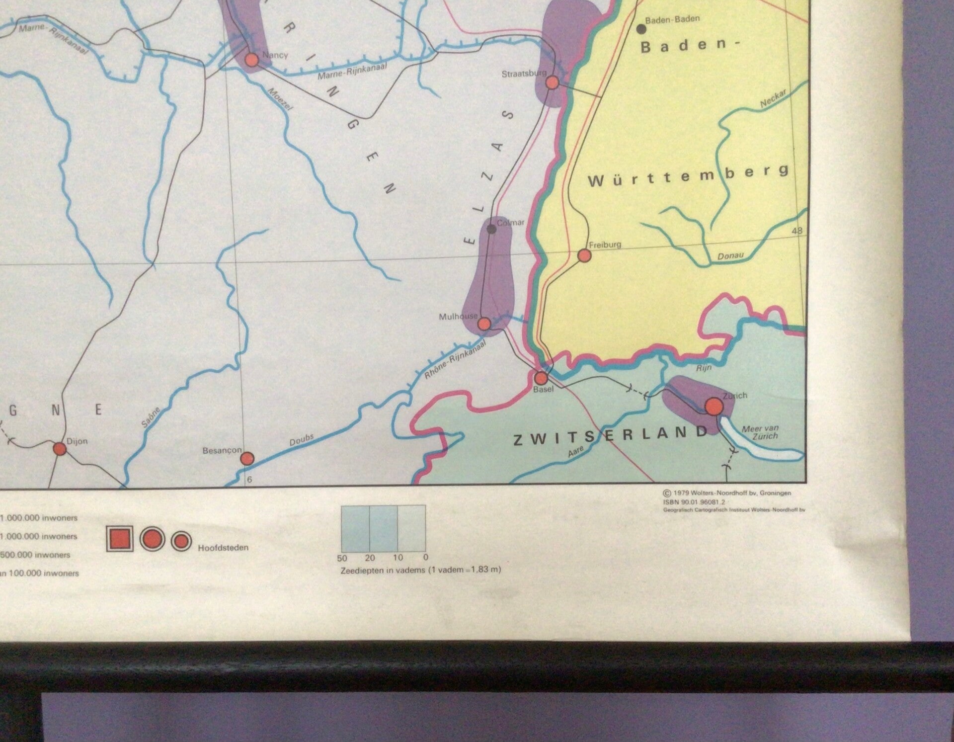 Oude kaart uitgegeven door Wolters-Noordhoff te Groningen (1979) op vinyl en oprolbaar op stokken.