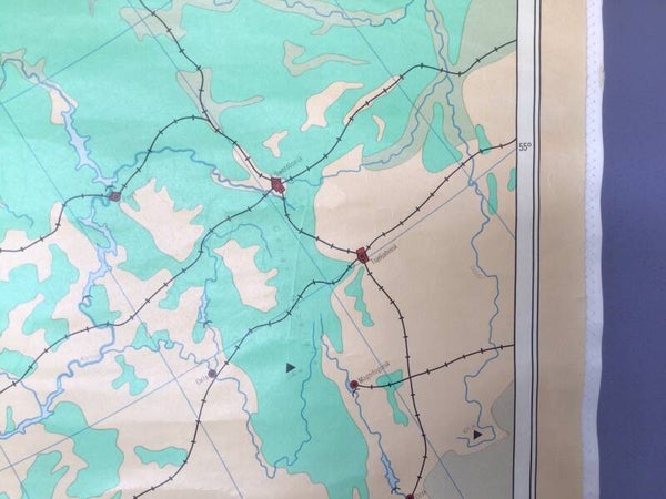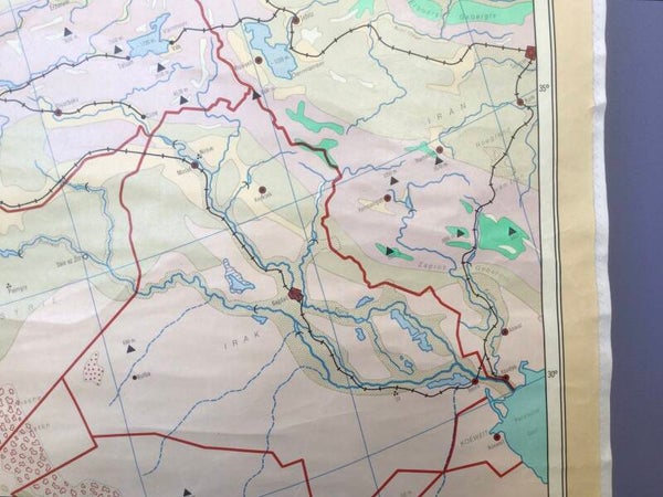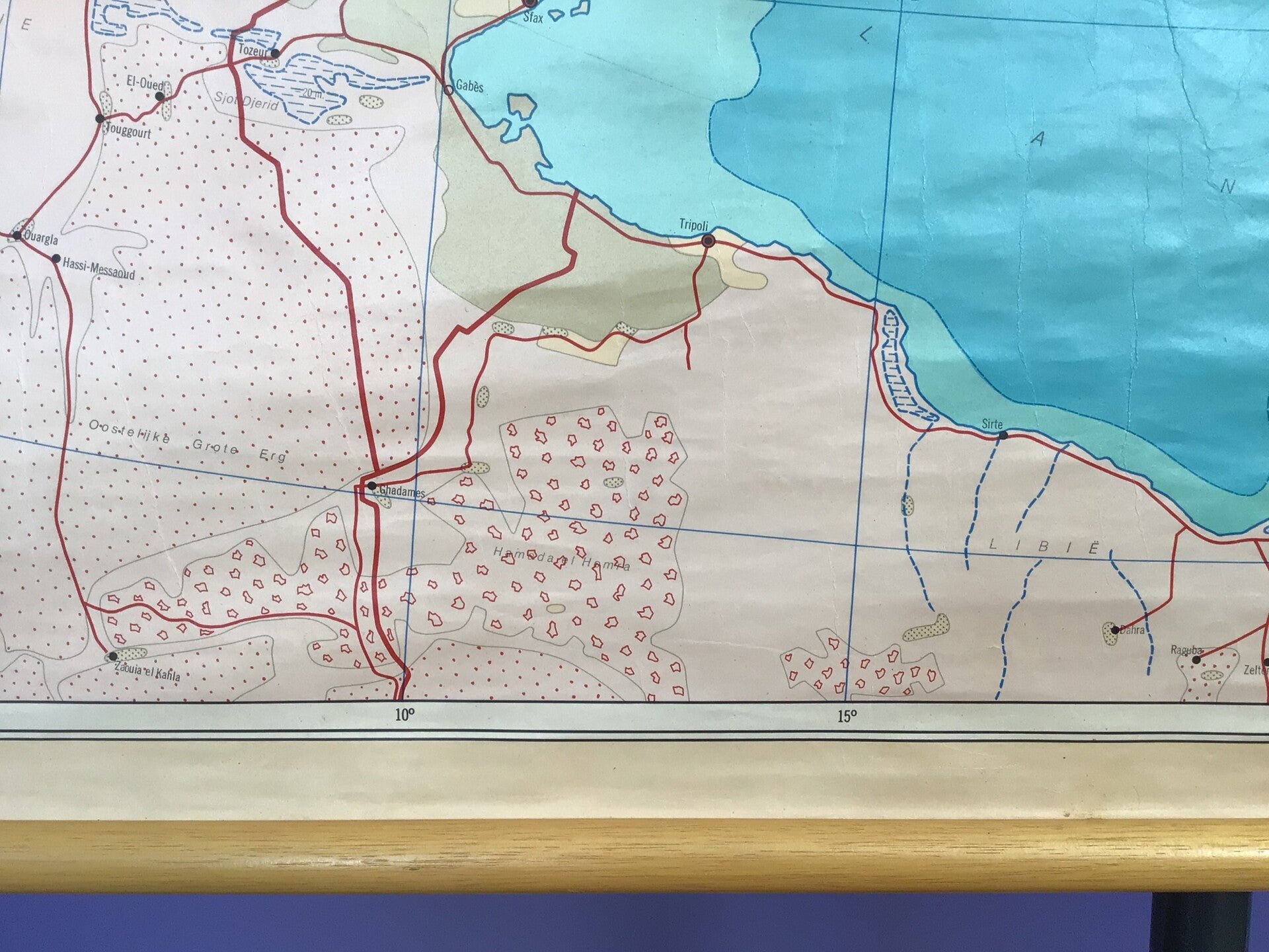 Een prachtige kaart van de werkgroep Van Dongen, uitgegeven door Dijkstra's Uitgeverij in Zeist, gedrukt op linnen en handig oprolbaar met behulp van stokken.