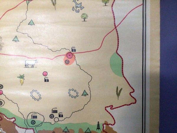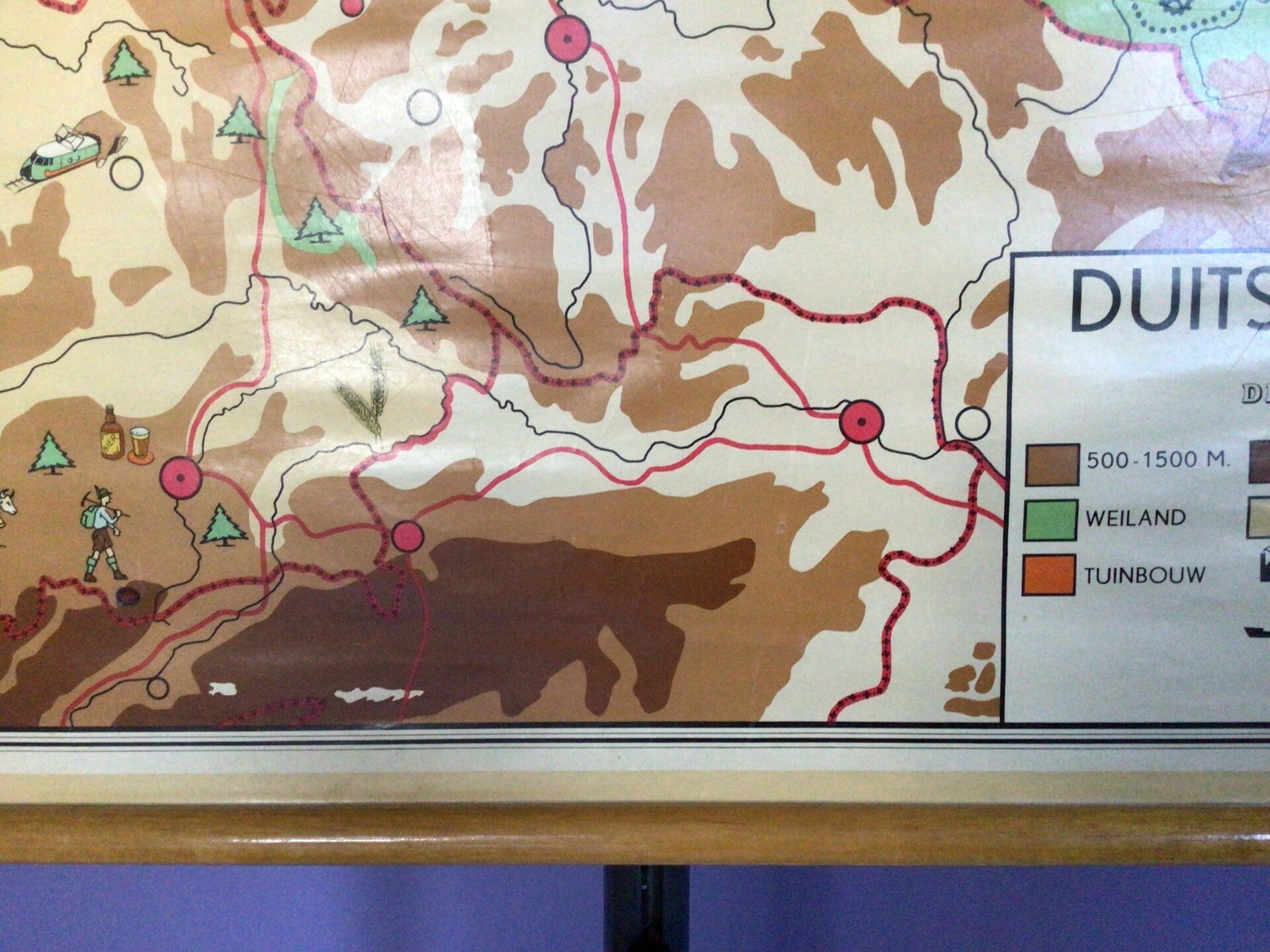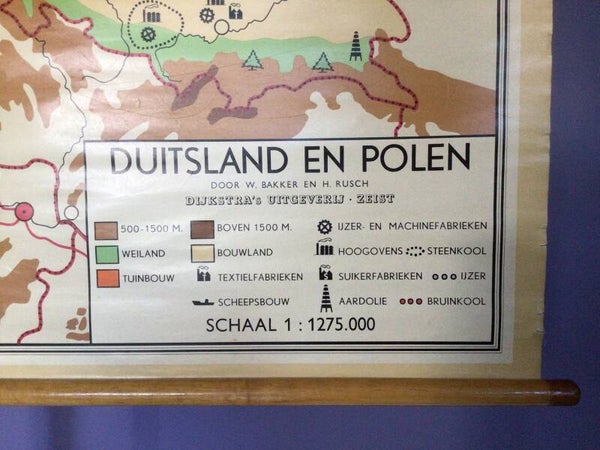 Mooie, kleurrijke kaart van Dijkstra's uitgeverij, gedrukt op linnen en gemakkelijk op te rollen op stokken. Deze kaart bevat pictogrammen en een legenda voor extra gemak.