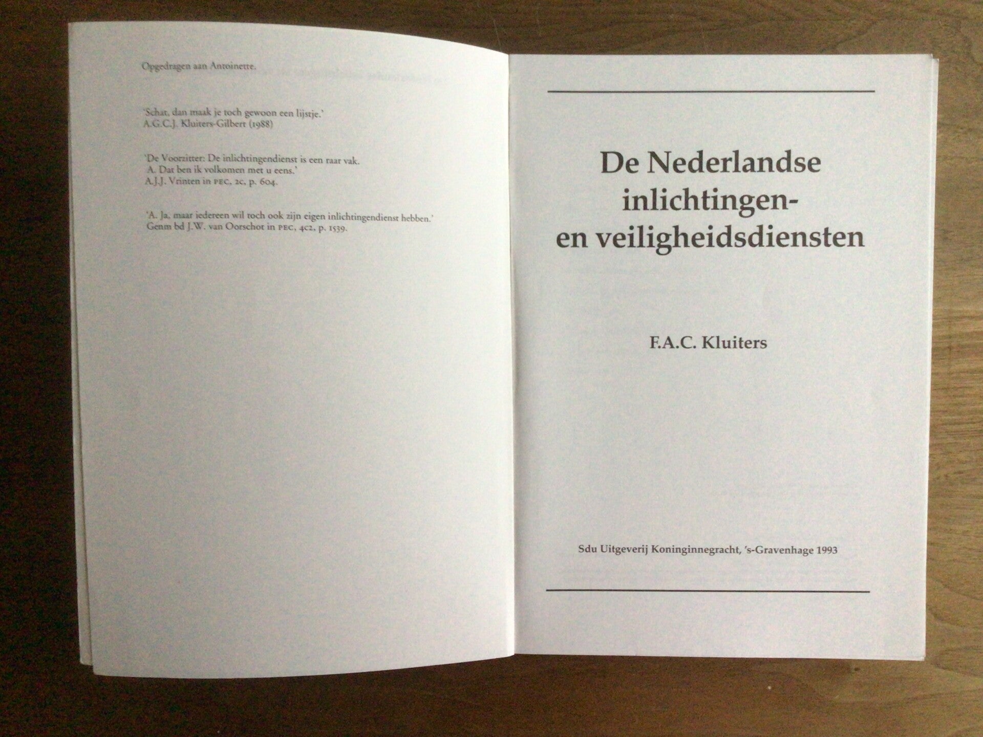 De Nederlandse inlichtingen- en veiligheidsdiensten - F.A.C. Kluiters