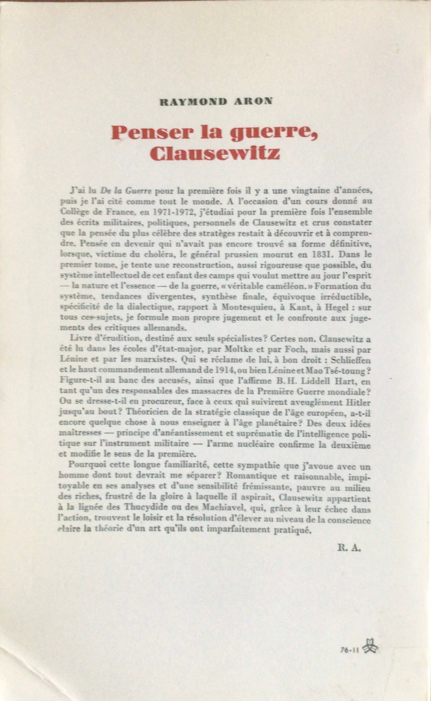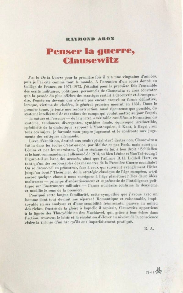 Penser la Guerre Clausewitz I en II Lâge Planétaire - Raymond Aron (2 delen)