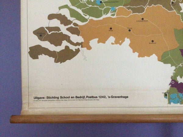 Originele kaart van Stichting School en Bedrijf uit 's-Gravenhage, gedrukt op duurzaam linnen en oprolbaar met stokken.