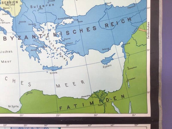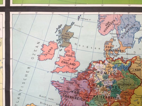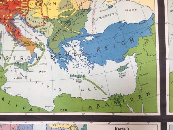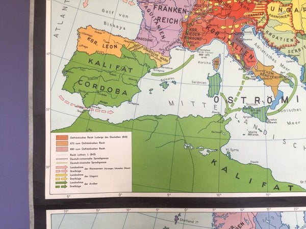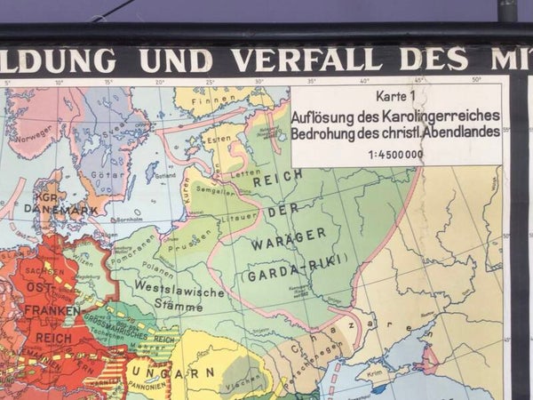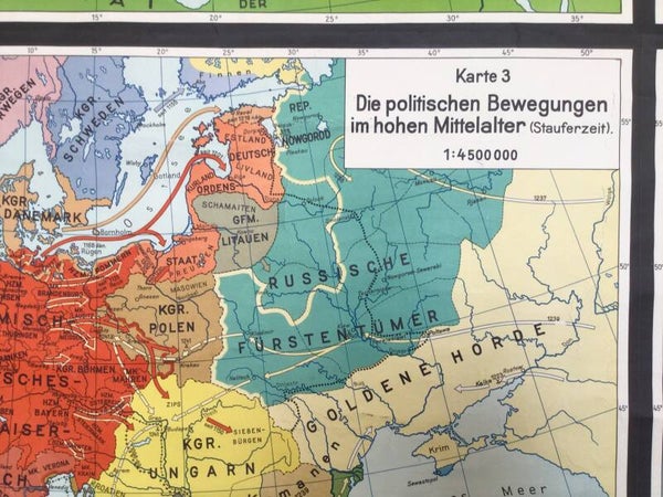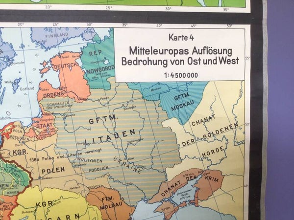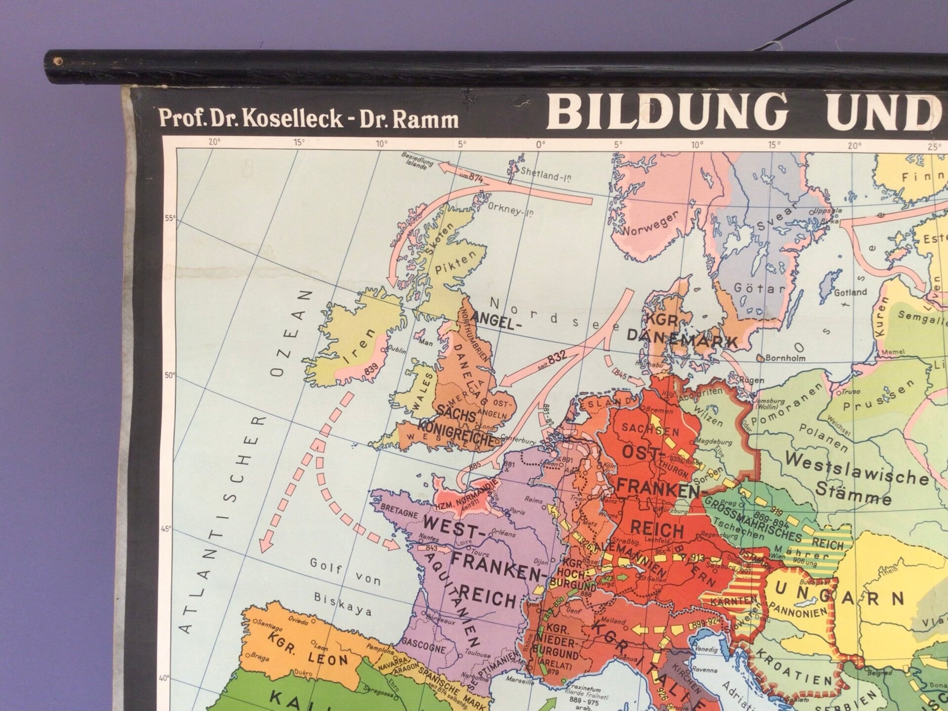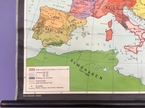 Een prachtige en informatieve kaart samengesteld door Prof. Dr. Koselleck en Dr. Ramm, en uitgegeven door Flemmingsverlag in Hamburg. Gedrukt op linnen en opgerold op stokken voor gemakkelijke ophanging.