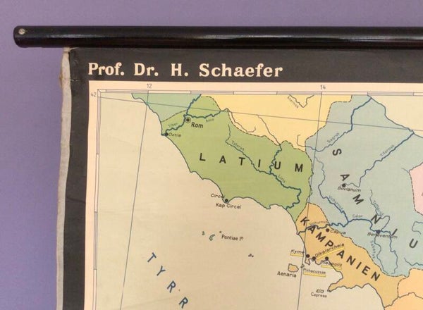 Mooie Duitse kaart van Prof. H. Schaefer, uitgegeven door Femmings Verlag Hamburg, gedrukt op linnen en gemonteerd op stokken.