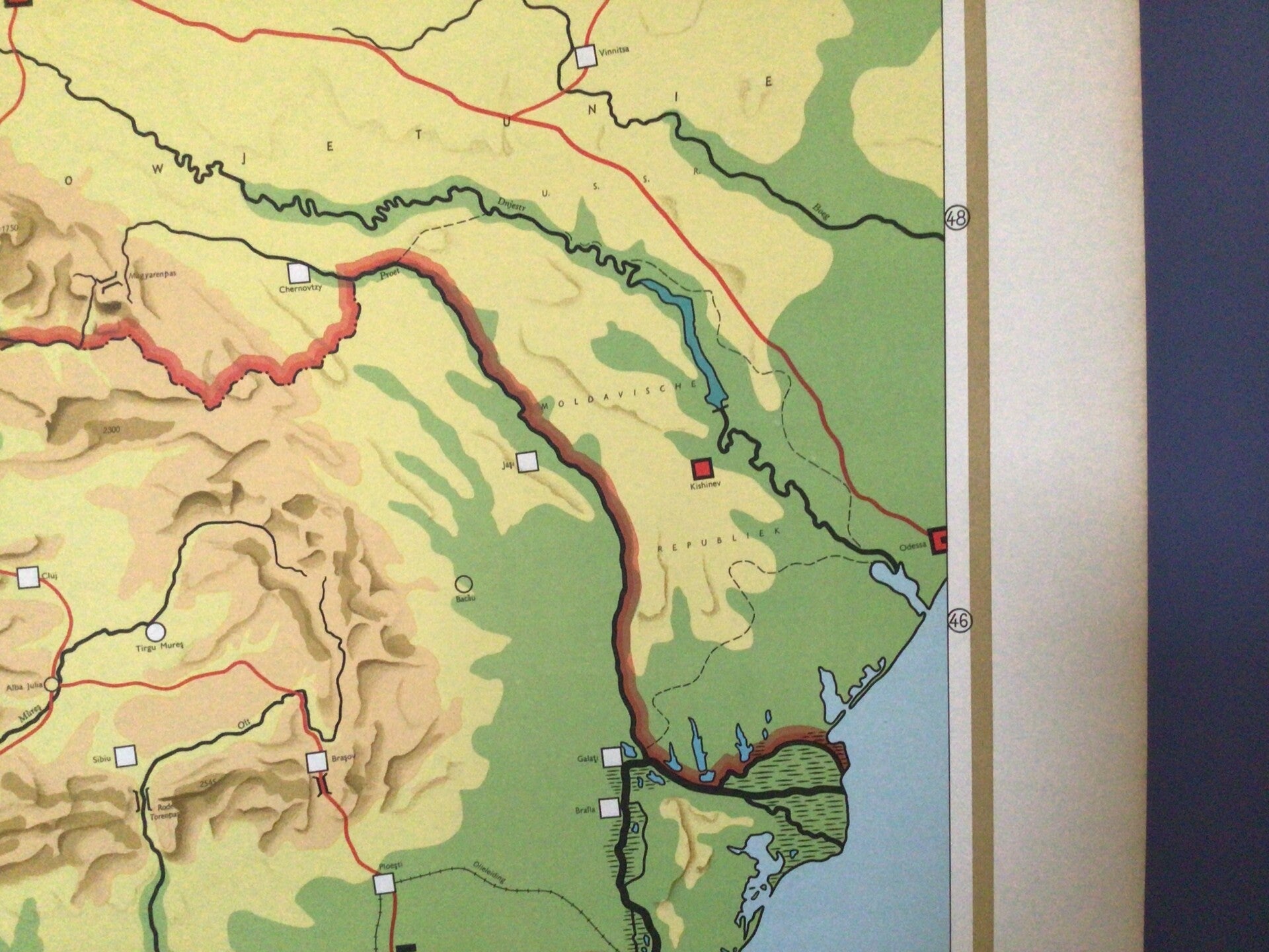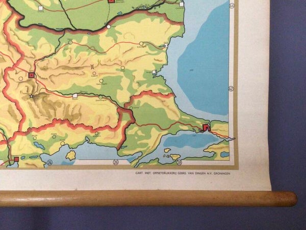 Oude kaart van R. Bos en door K.Zeeman en uitgegeven door P. Noordhoff te Groningen (zevende druk) op linnen en oprolbaar op stokken.