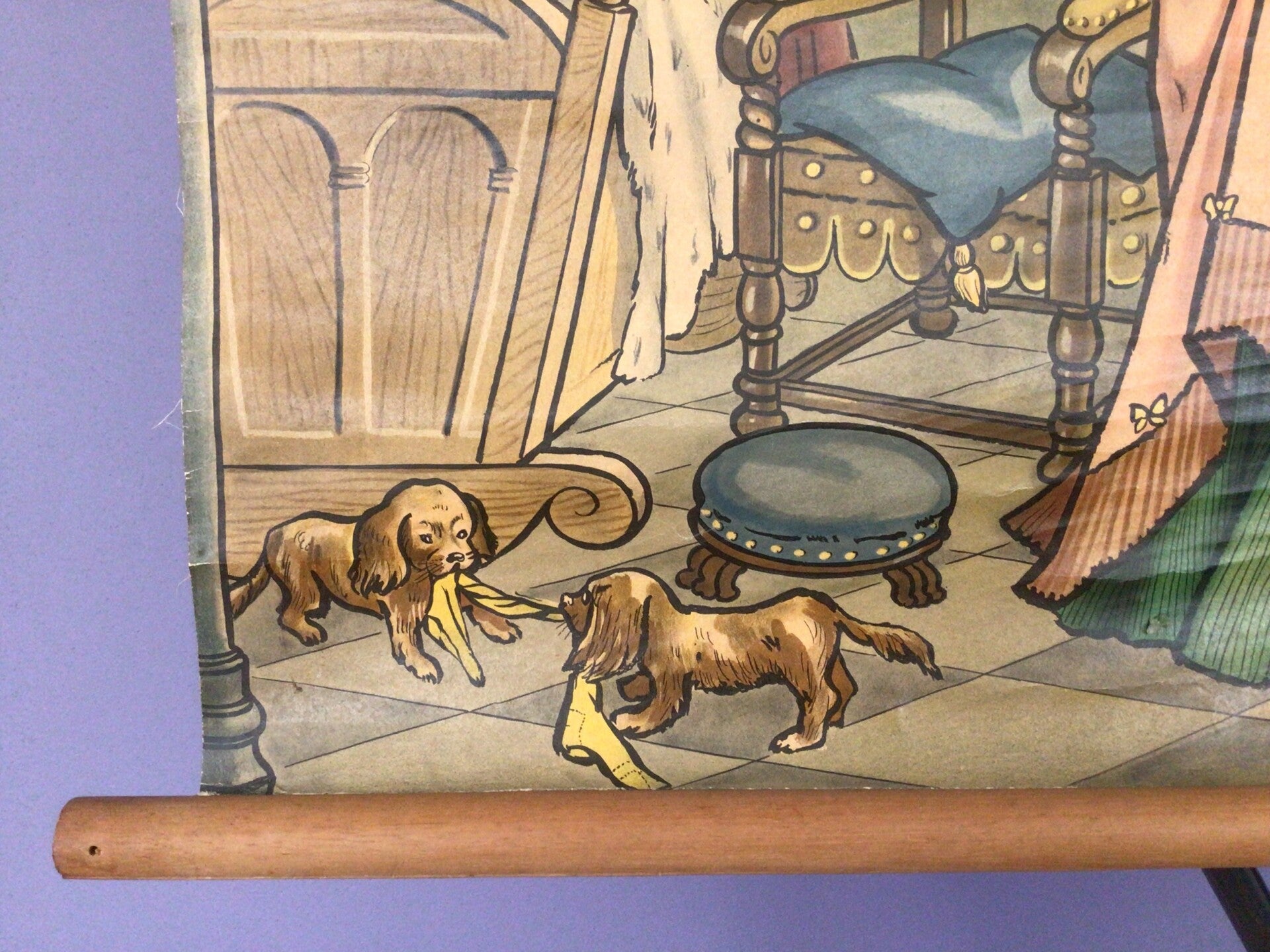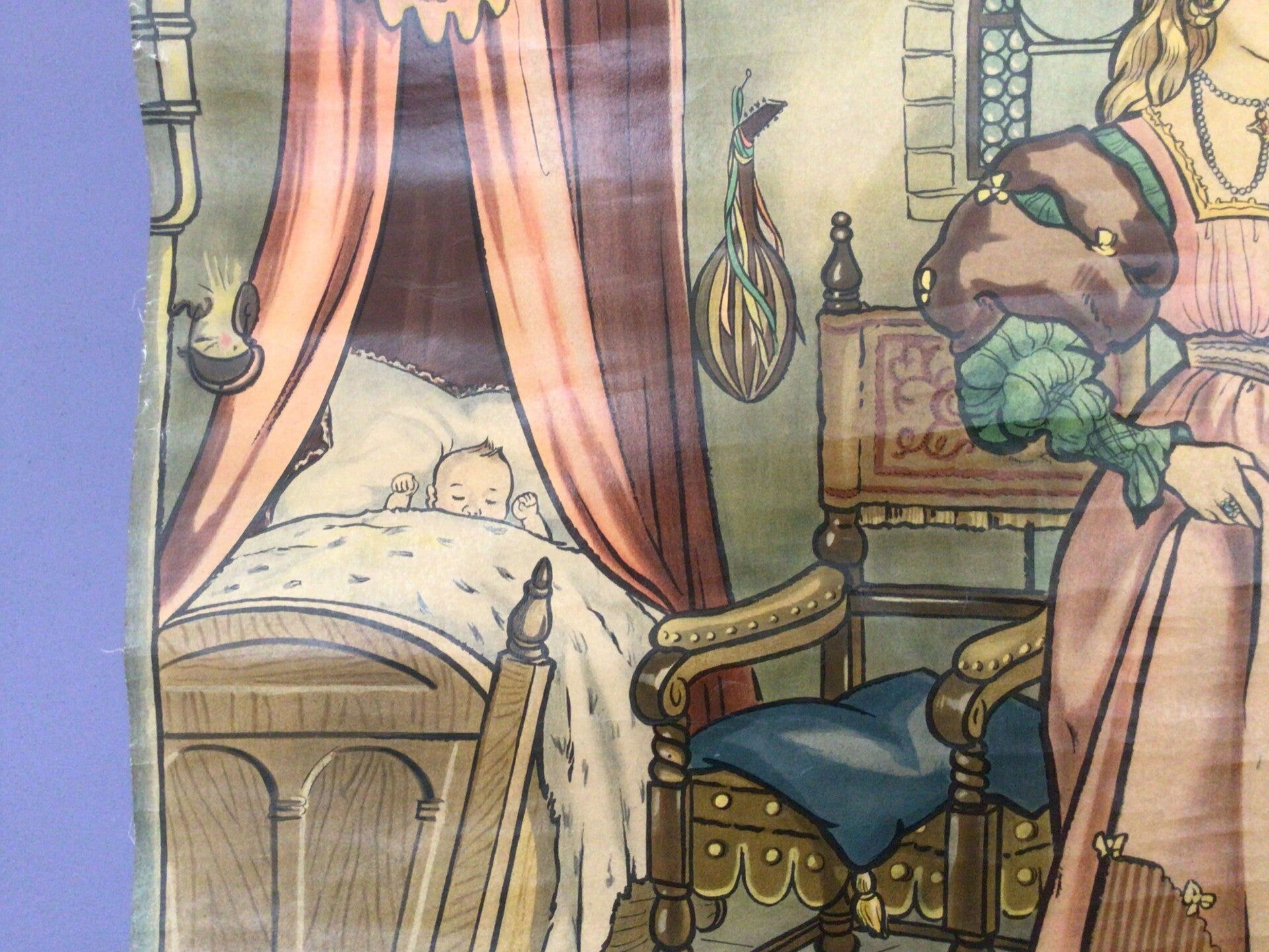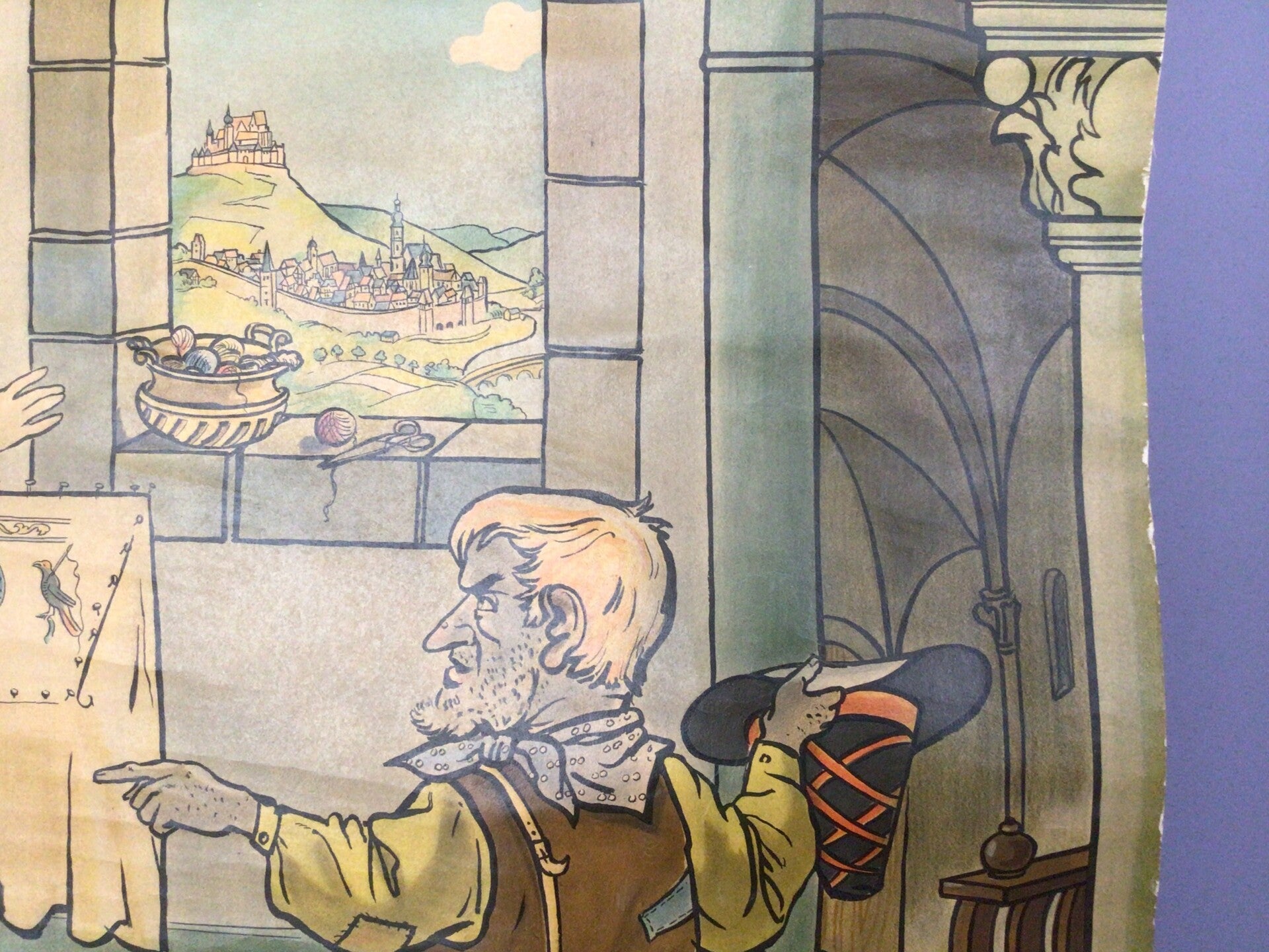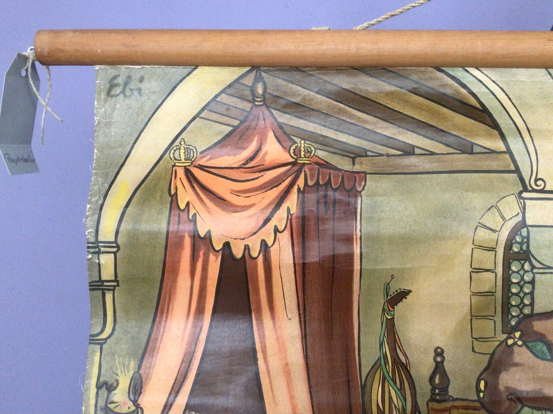 Leuke oude sprookjeskaart van Ebi, gedrukt op linnen, gevernist en oprolbaar op stokken.