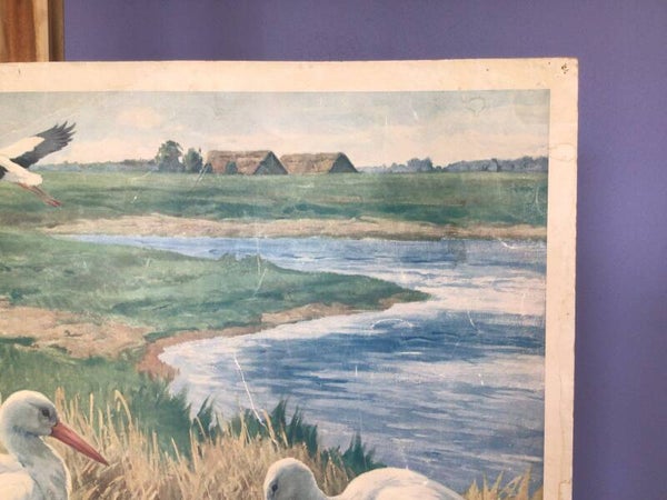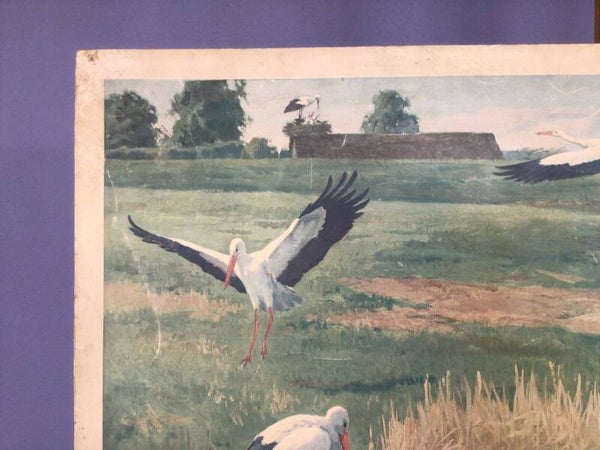 Prachtige plaat van de ooievaar in zijn natuurlijke omgeving op stevig papier.