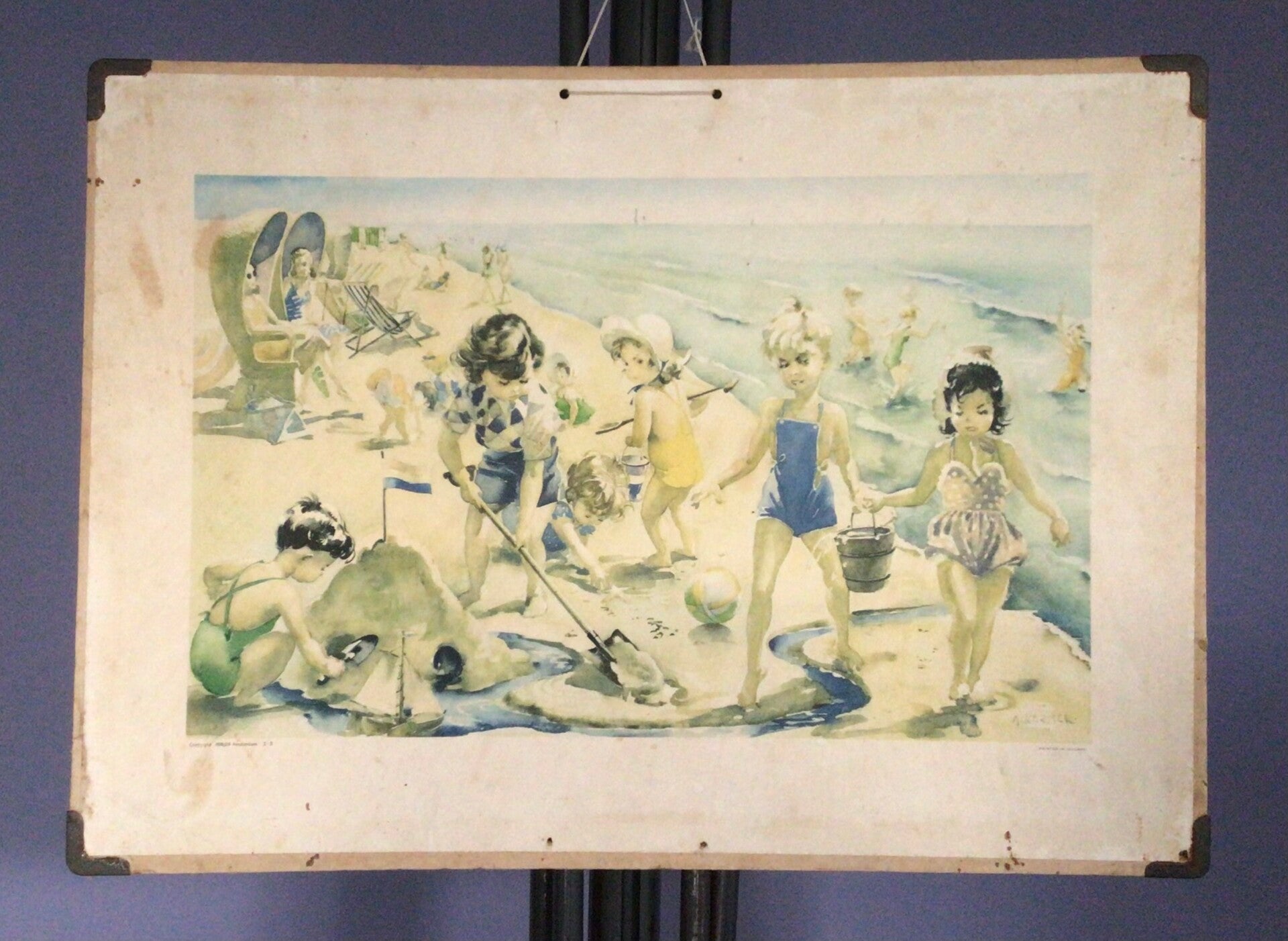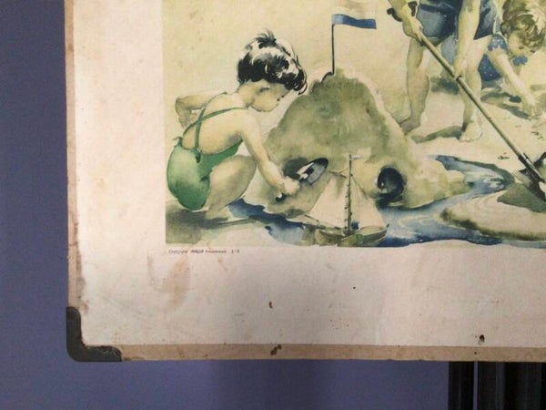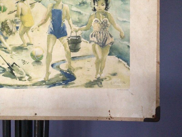Leuke oude kaart van kinderen aan het strand van Anne Kermer. Zeer geschikt om op te hangen in de speelhoek of de kinderkamer.