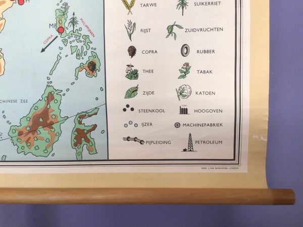Mooie, kleurrijke oude kaart van Dijkstra's uitgeverij, gedrukt op linnen en gemakkelijk op te rollen op stokken. Deze kaart bevat leuke pictogrammen en een legenda voor extra gemak.