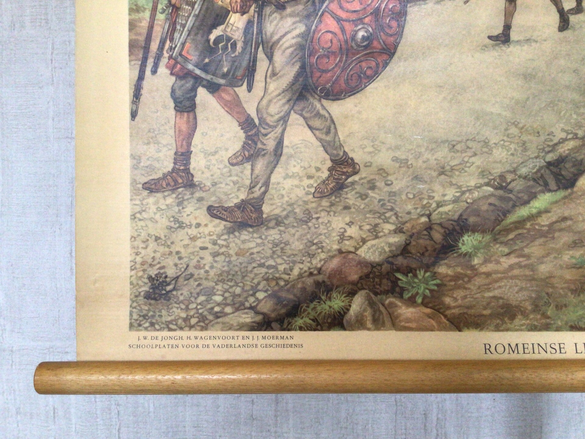 Oude Schoolkaart Romeinse legerplaats aan de Rijnmond (Valkenburg)