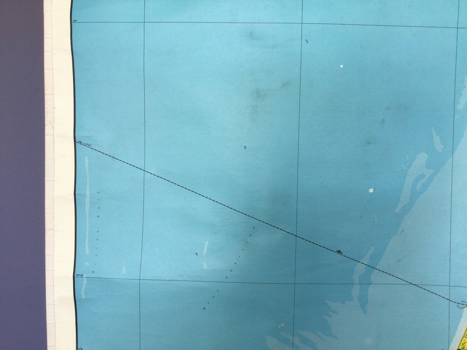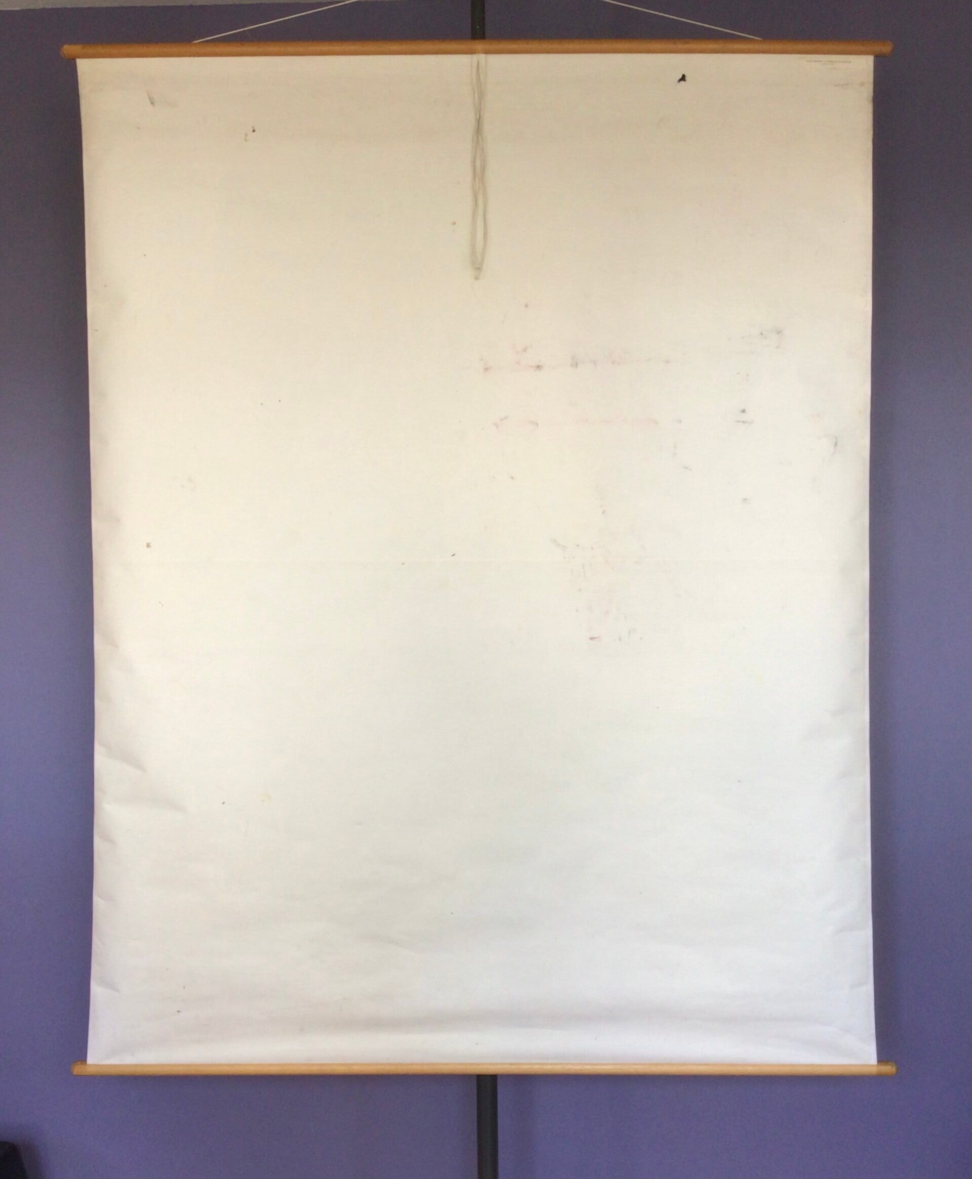 De kaart is op linnen bevestigd, oprolbaar en voorzien van houten stokken.