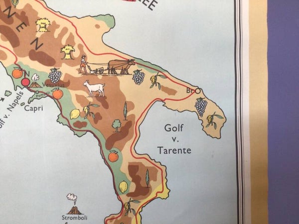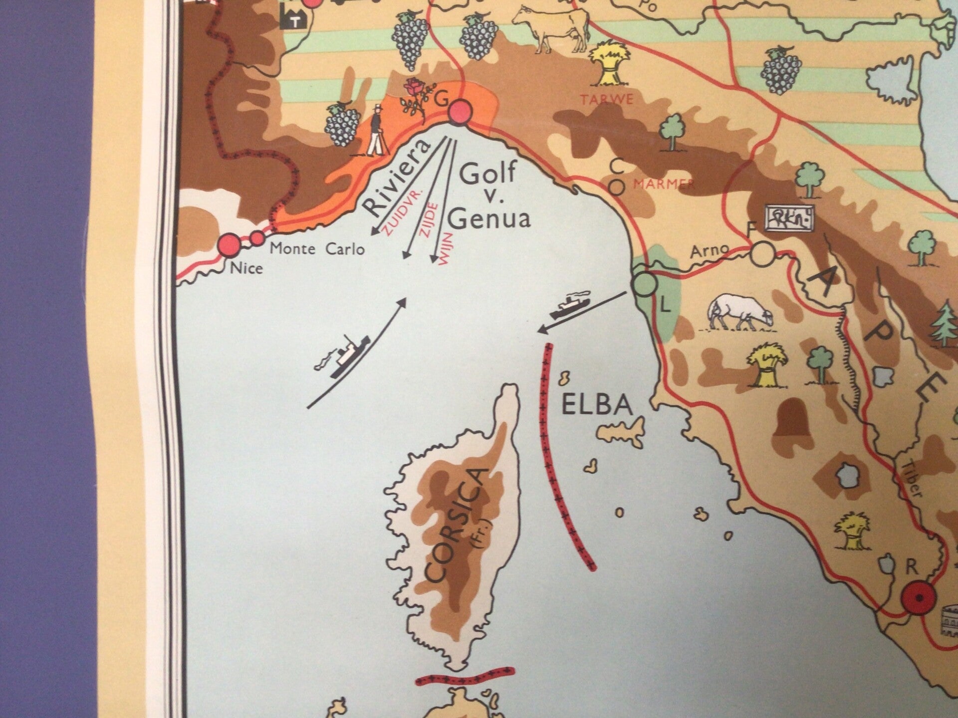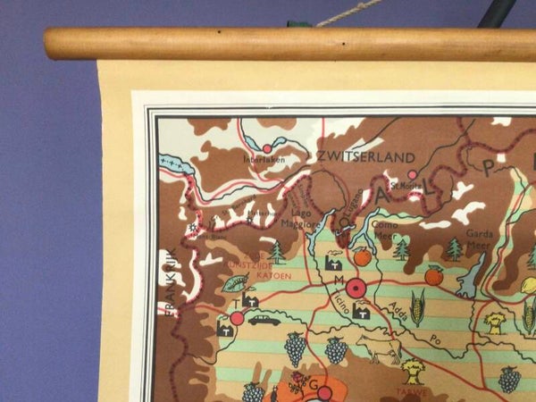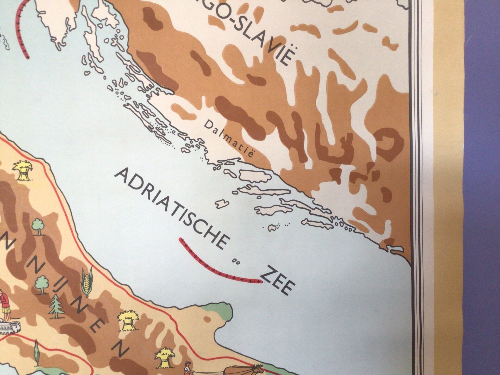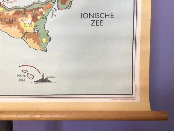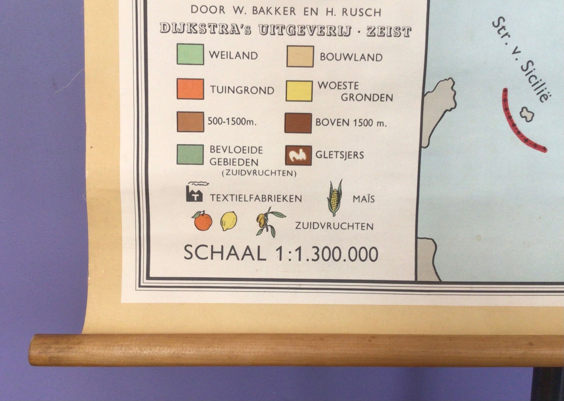 Mooie, kleurrijke oude kaart van Dijkstra's uitgeverij, gedrukt op linnen en gemakkelijk op te rollen op stokken. Deze kaart bevat pictogrammen en een legenda voor extra gemak.