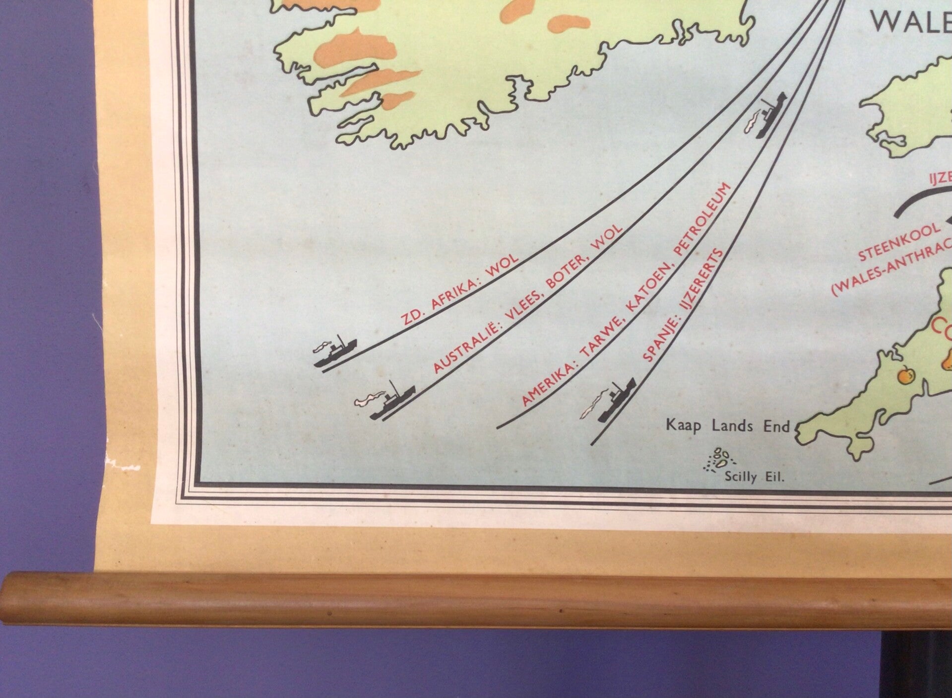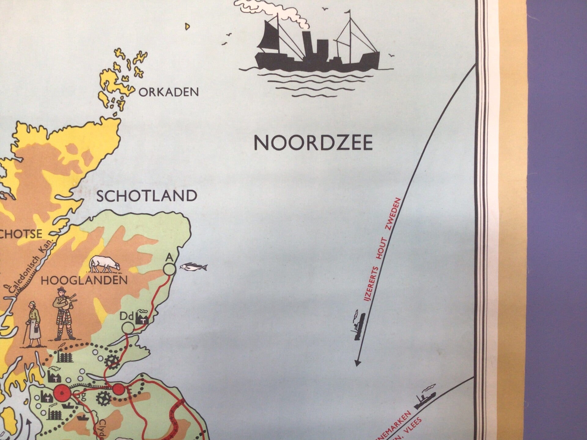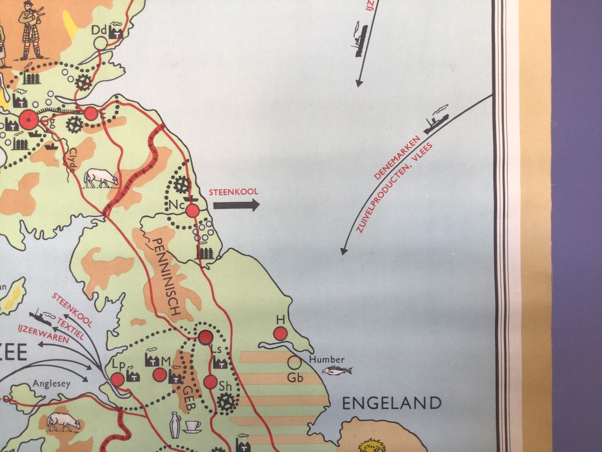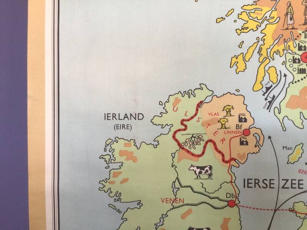 Mooie, kleurrijke oude kaart van Dijkstra's uitgeverij, gedrukt op linnen en gemakkelijk op te rollen op stokken. Deze kaart bevat pictogrammen en een legenda voor extra gemak.