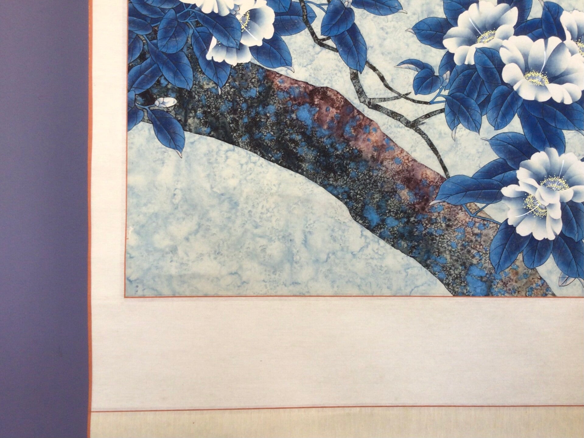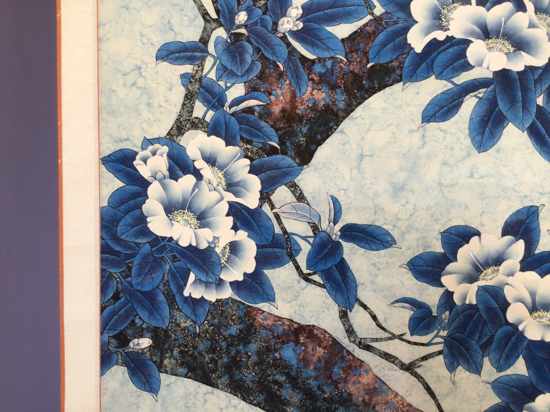 Het is een voorstelling van bloeiende sierkers (sakura), symbool voor lente en vergankelijkheid.