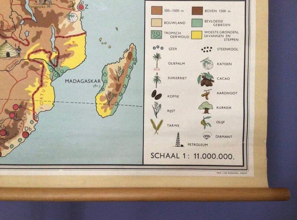 Mooie, kleurrijke oude kaart van Dijkstra's uitgeverij, gedrukt op linnen en gemakkelijk op te rollen op stokken. Deze kaart bevat leuke pictogrammen en een legenda voor extra gemak.