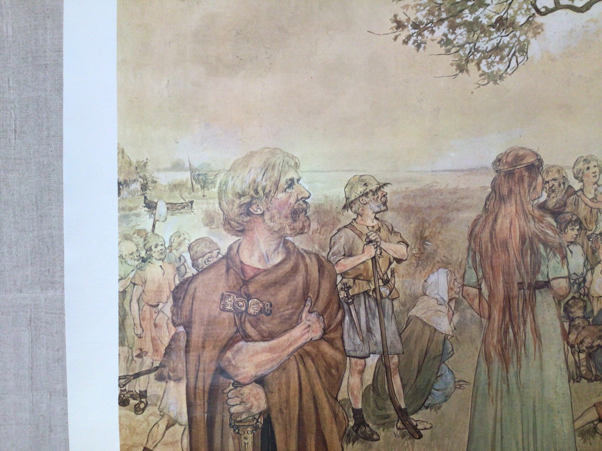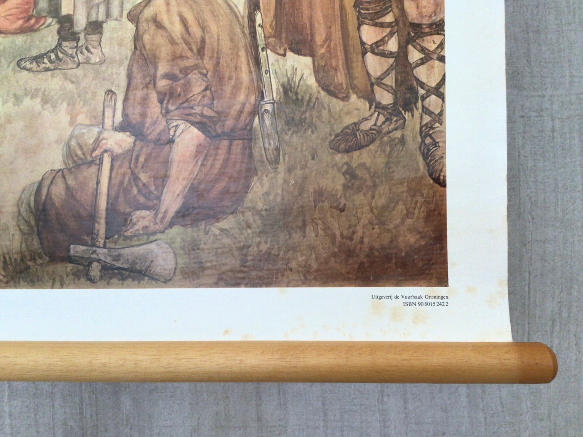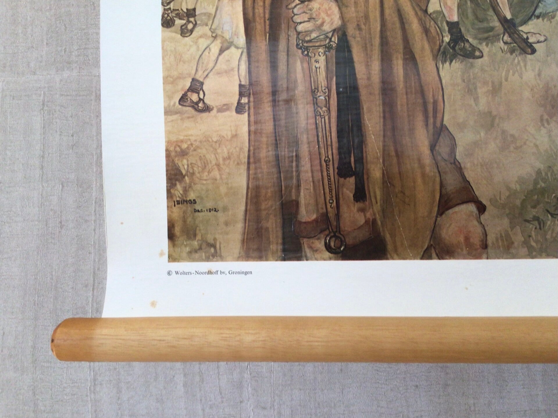 Deze prachtige kleurrijke plaat getekend door Isings en uitgegeven door De Vuurbaak te Groningen is op linnen en oprolbaar met stokken.