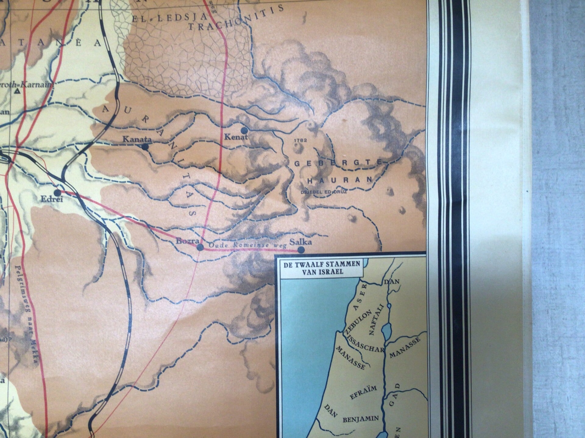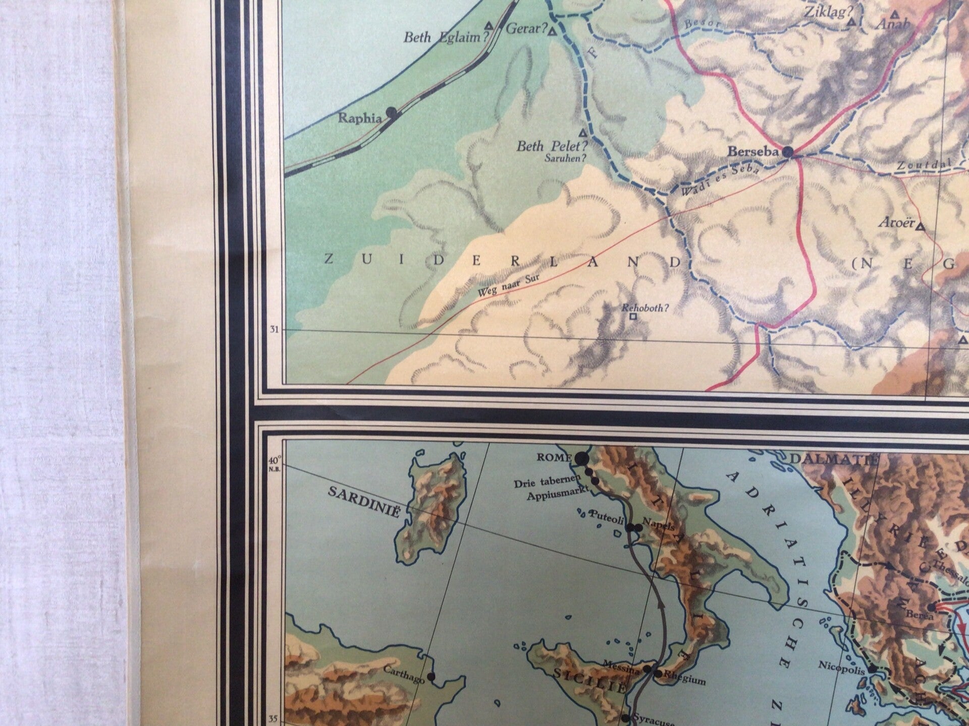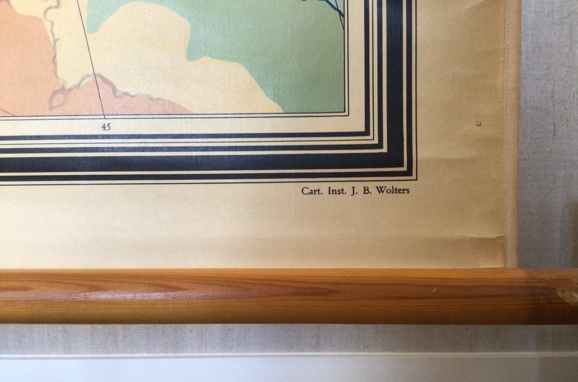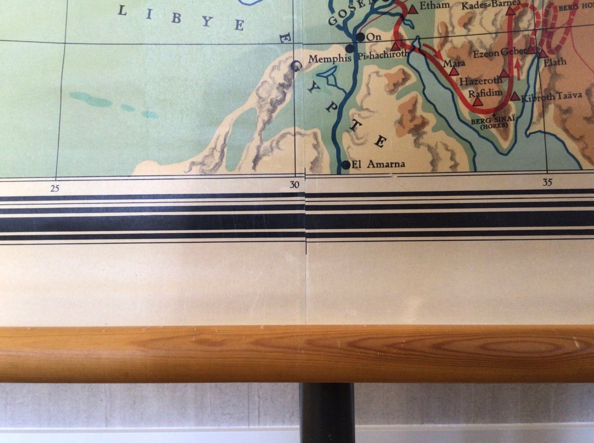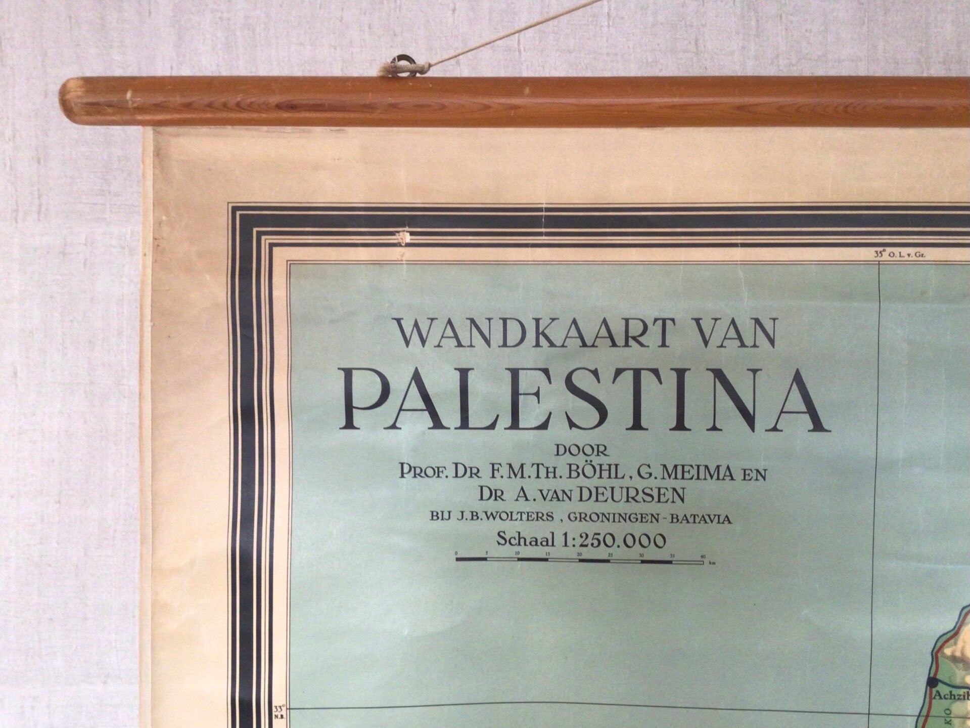 Zeer oude kaart van Prof. Dr. F.M.Th Bohl, G. Meima en Dr. A van Deursen en uitgegeven door J.B. Wolters te Groningen-Batavia op linnen en oprolbaar met stokken.