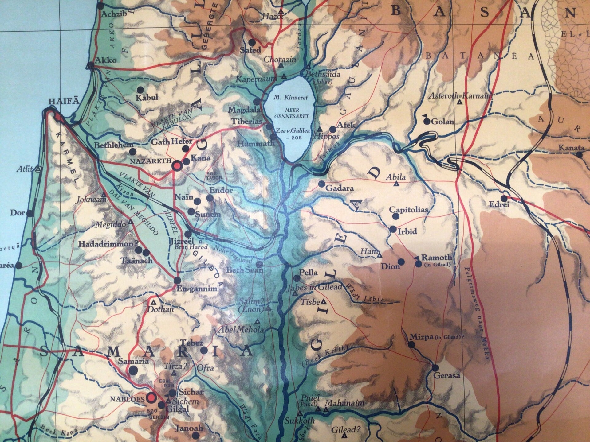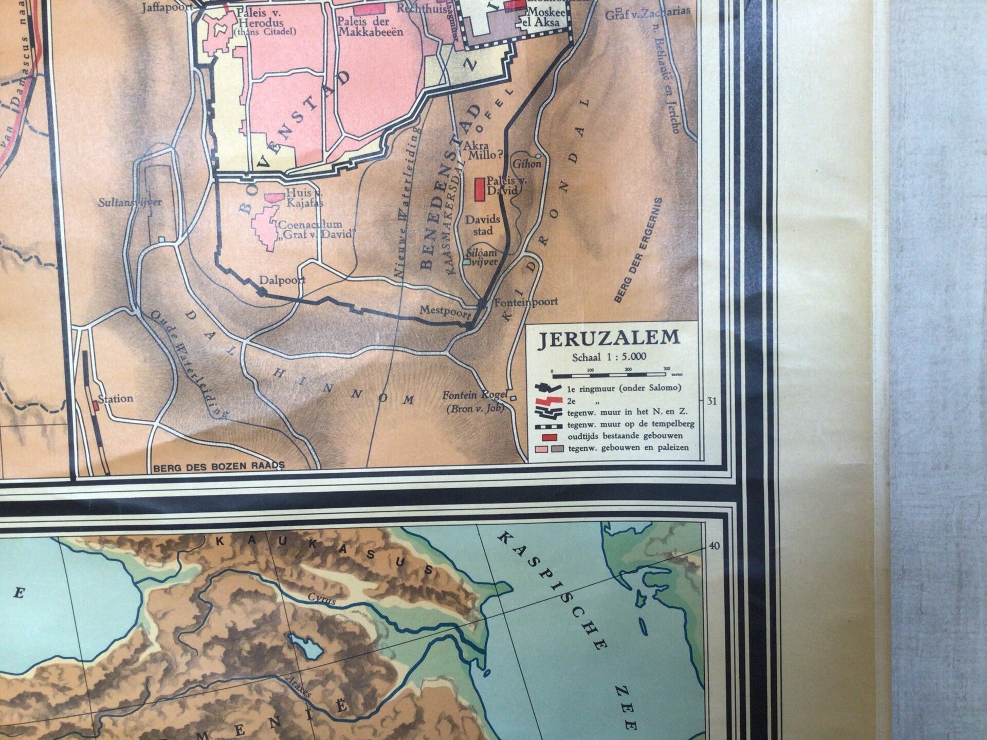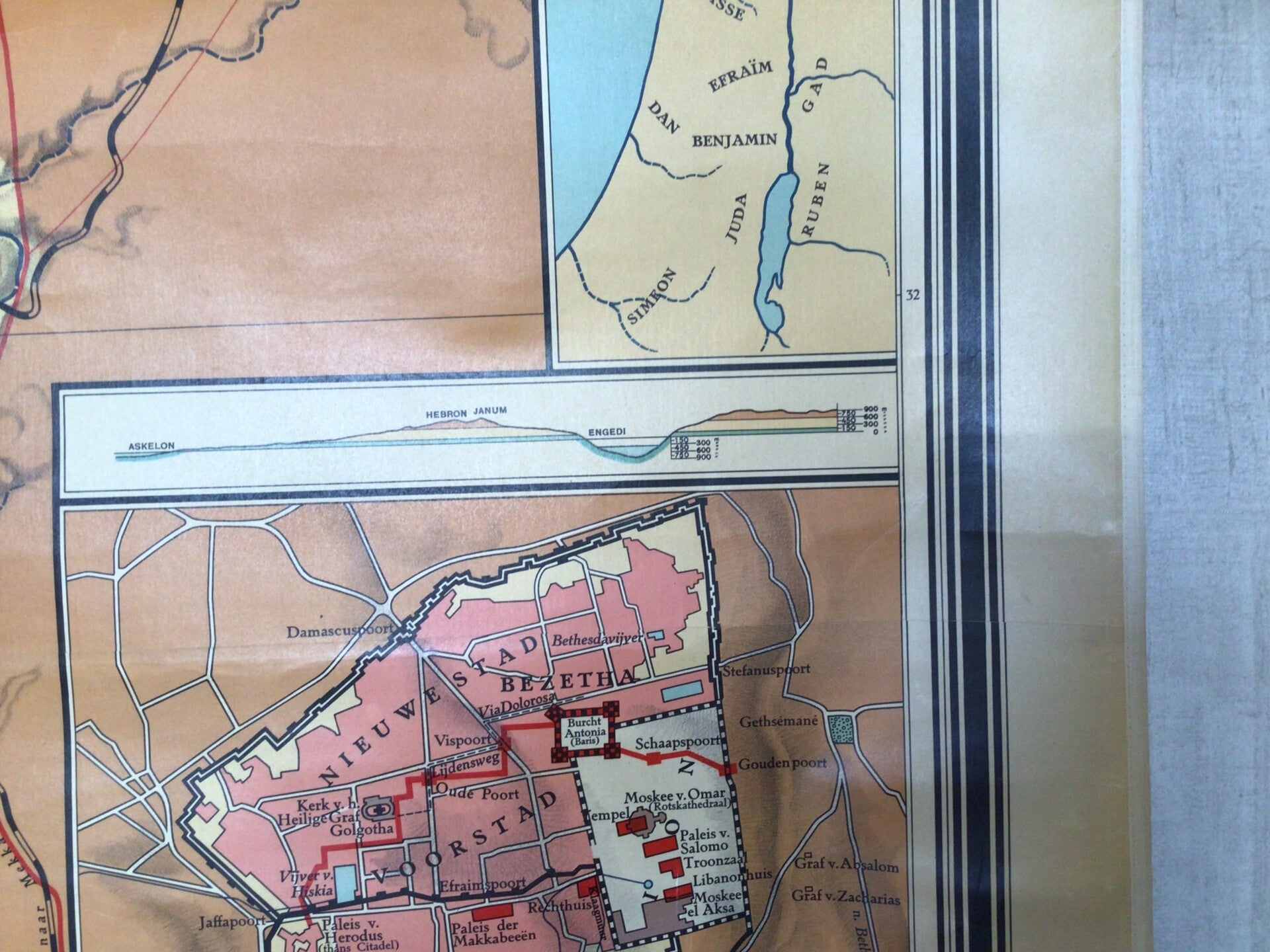 Oude Schoolkaart Palestina, Jeruzalem en de Landen der Heilige Schrift