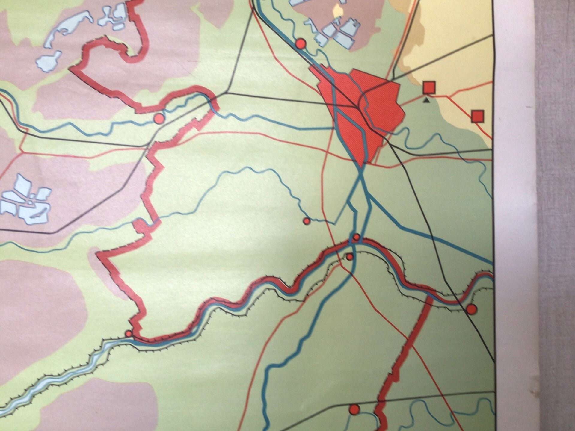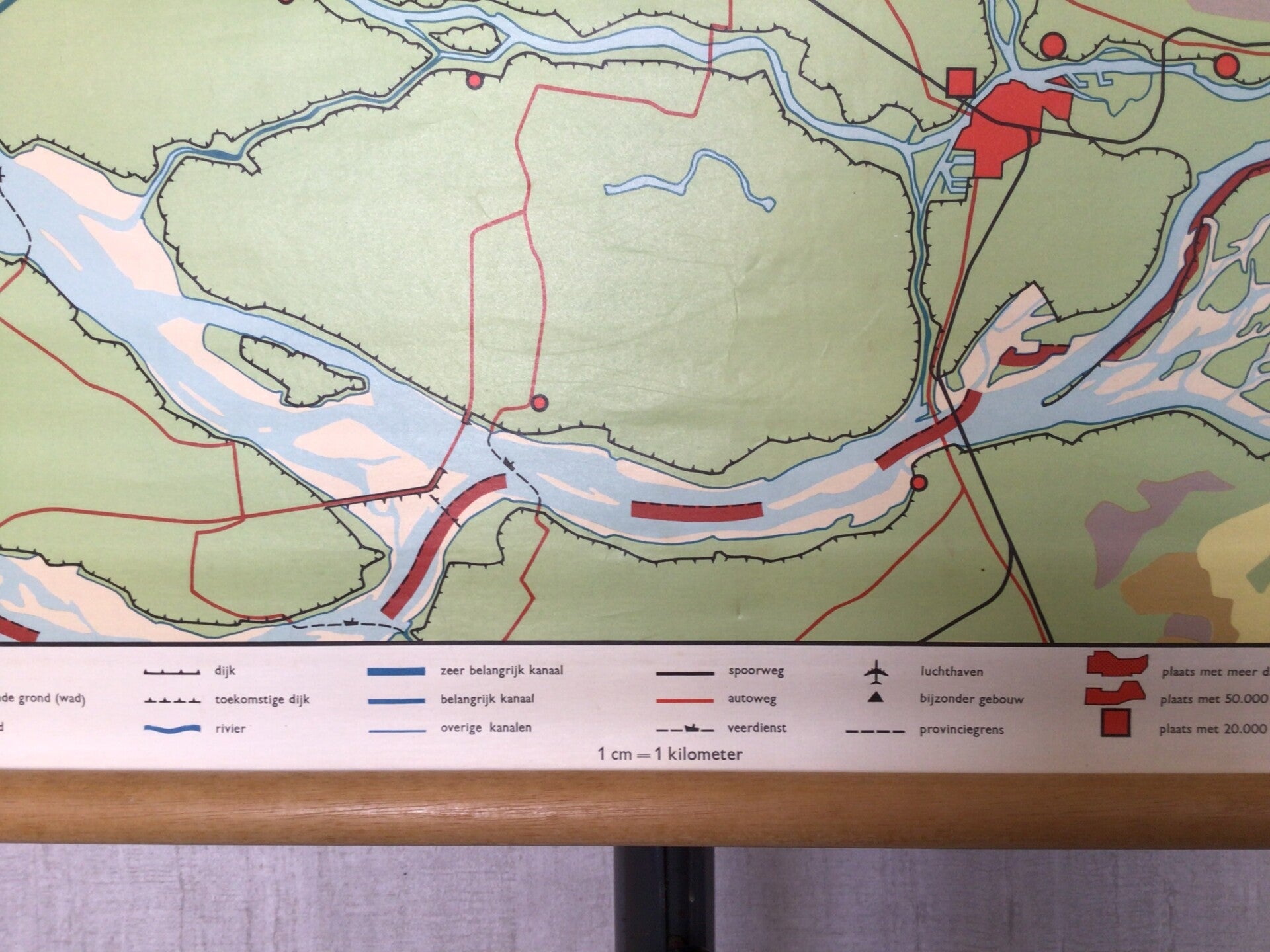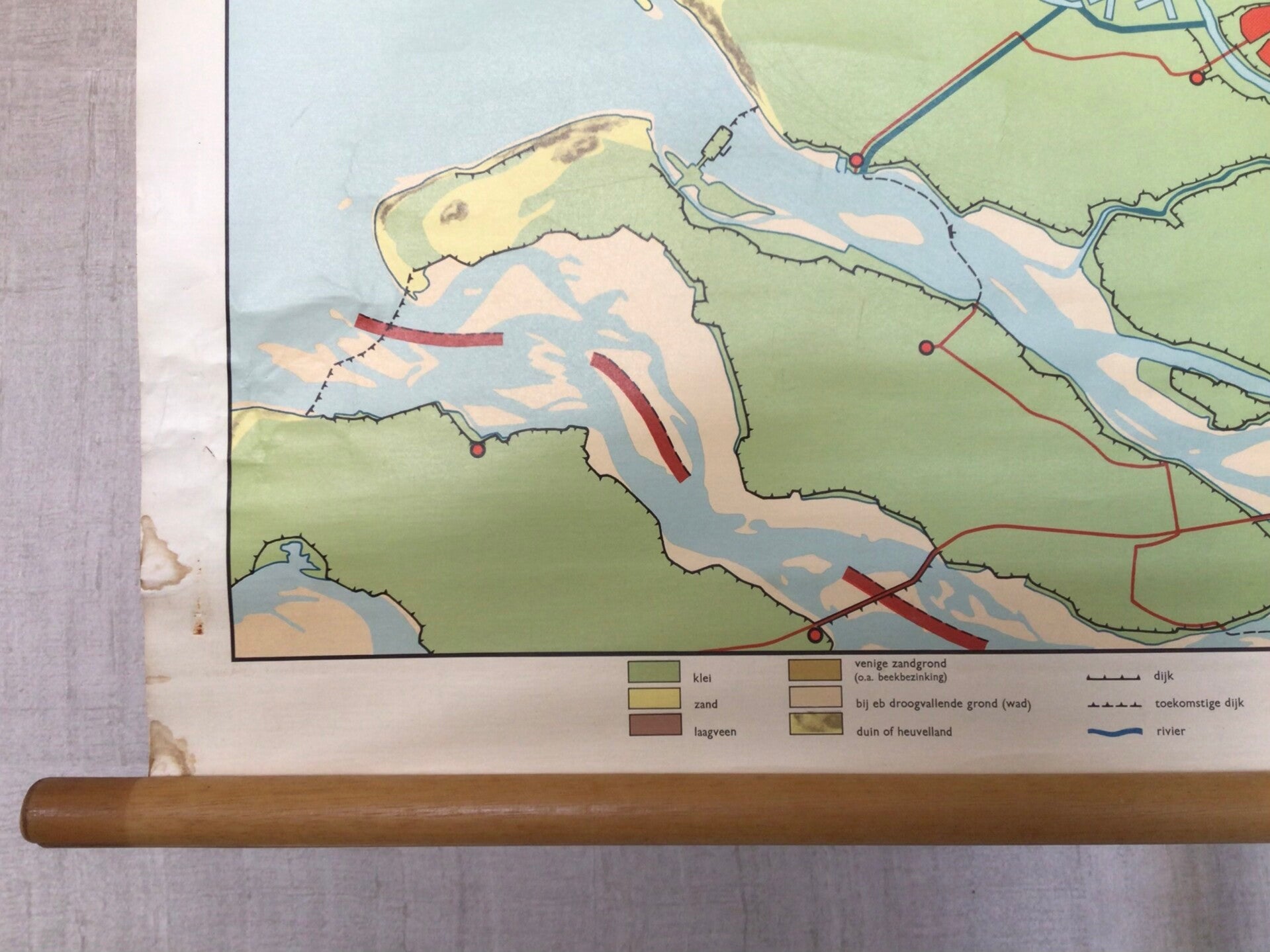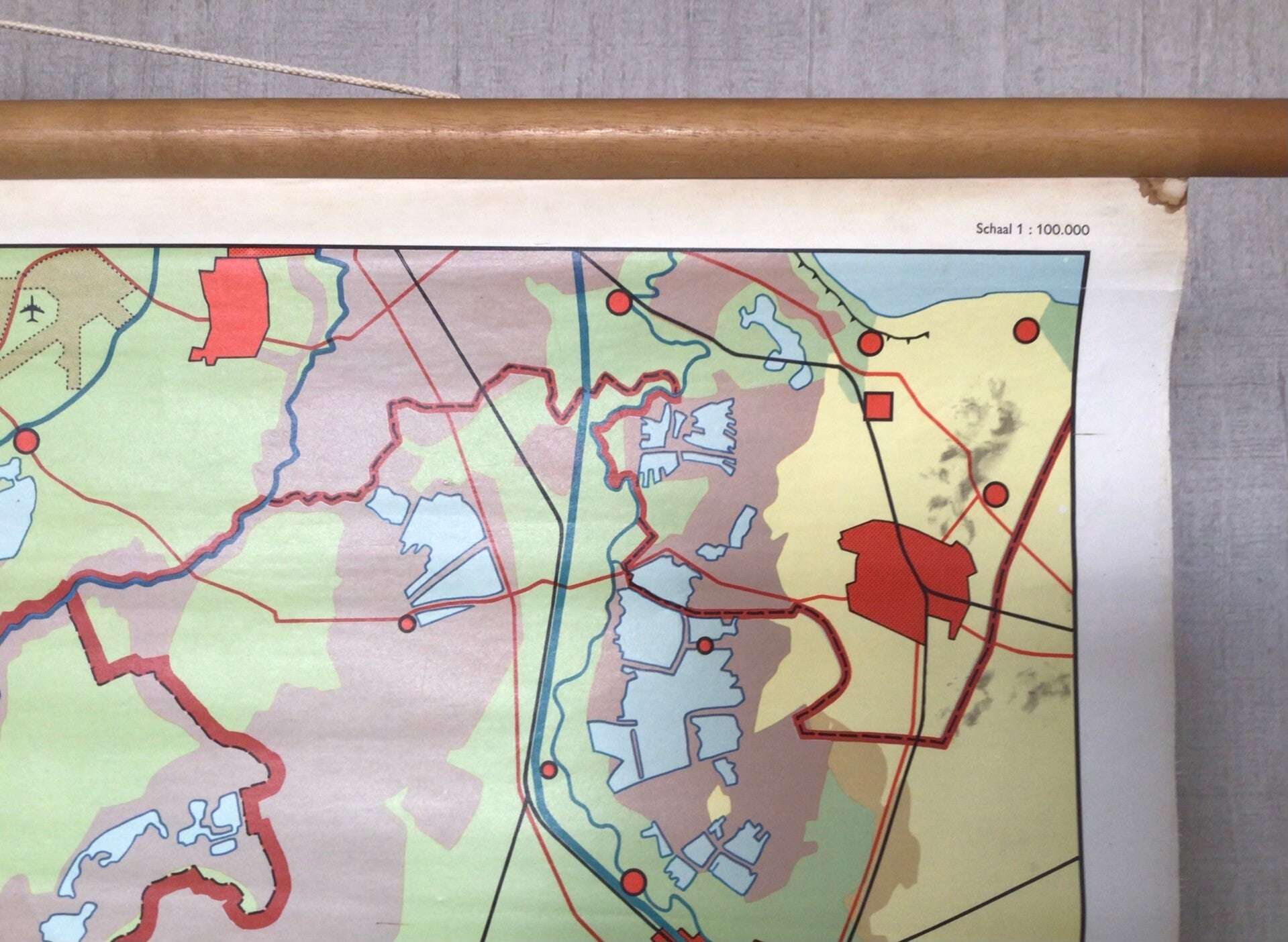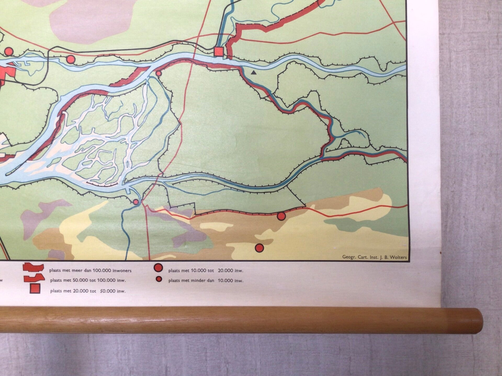 Mooie kaart van Geogr. Cart. Inst. J.B. Wolters (4e druk) op linnen en oprolbaar op stokken.