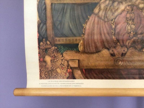 Mooie schoolkaart van Isings en uitgegeven door Wolters-Noordhoff op linnen en oprolbaar op stokken.