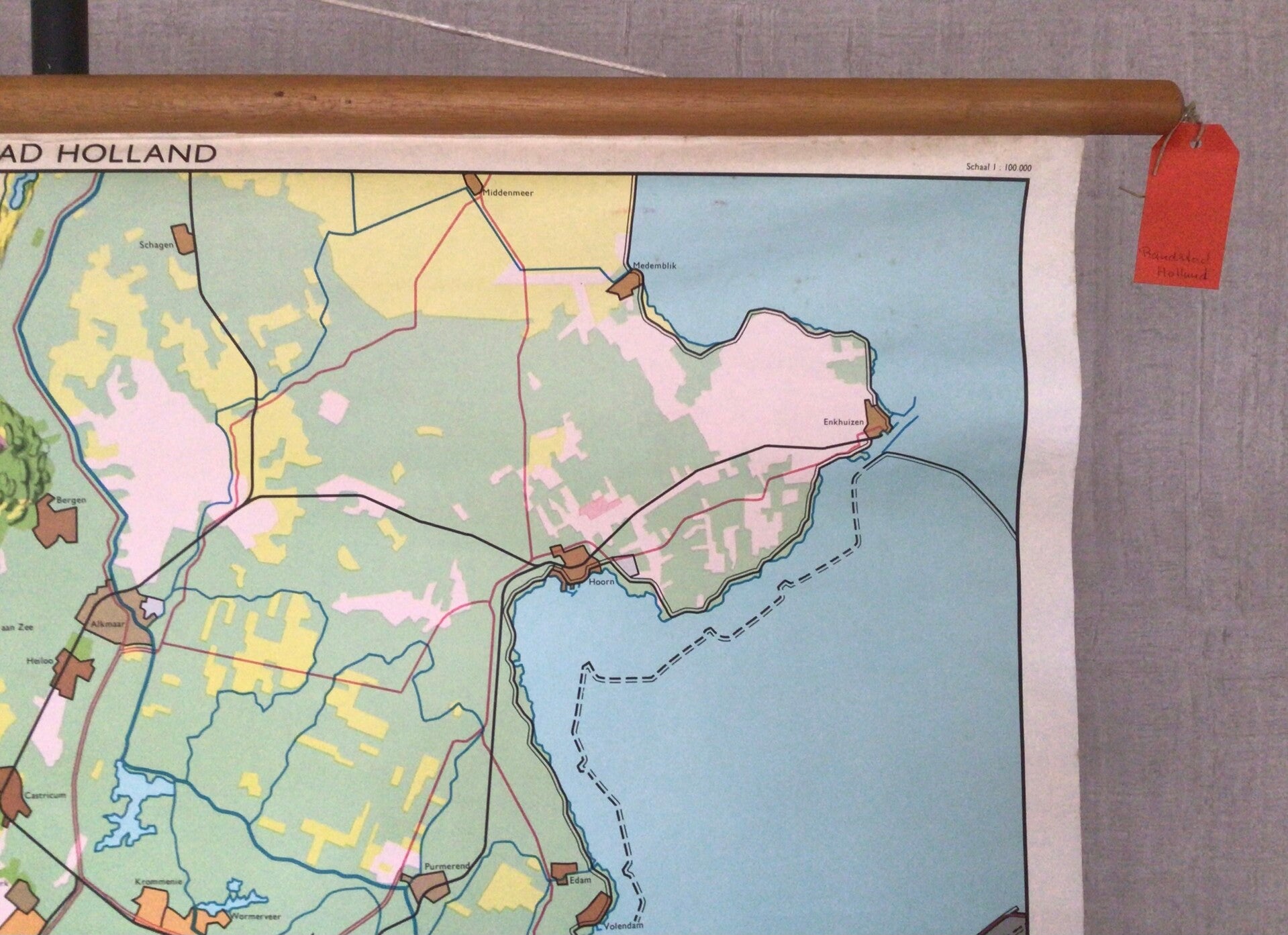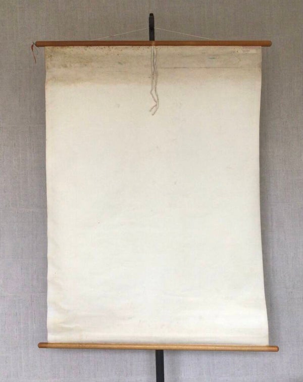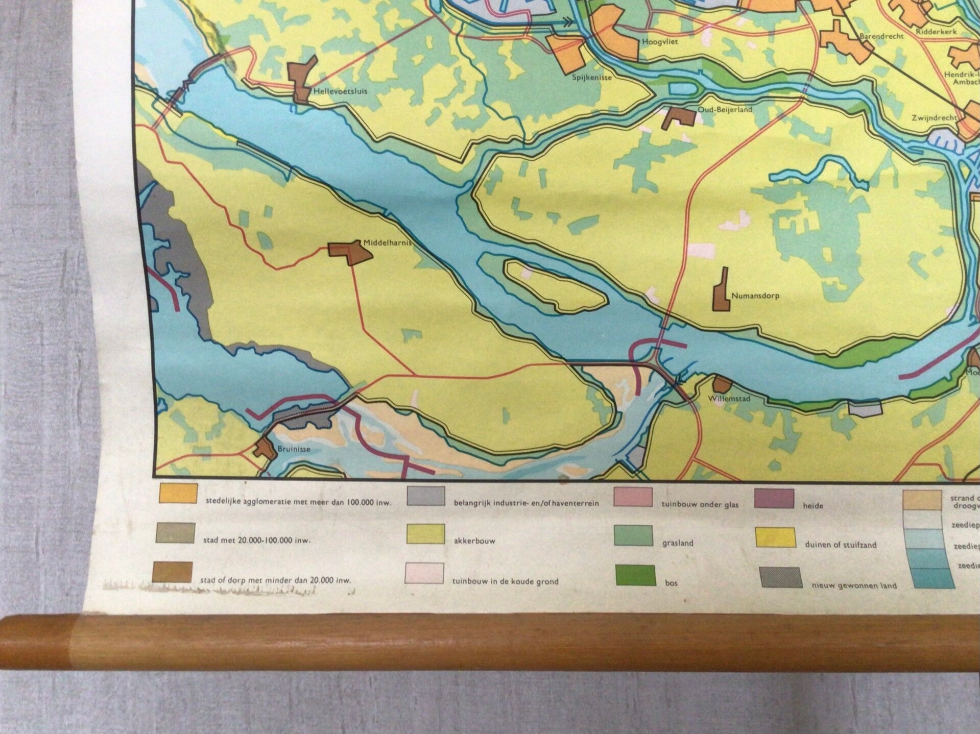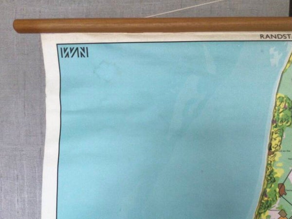 Oude kaart van Geogr. Cart. Inst. J.B. Wolters op linnen en oprolbaar op stokken en met een legenda.