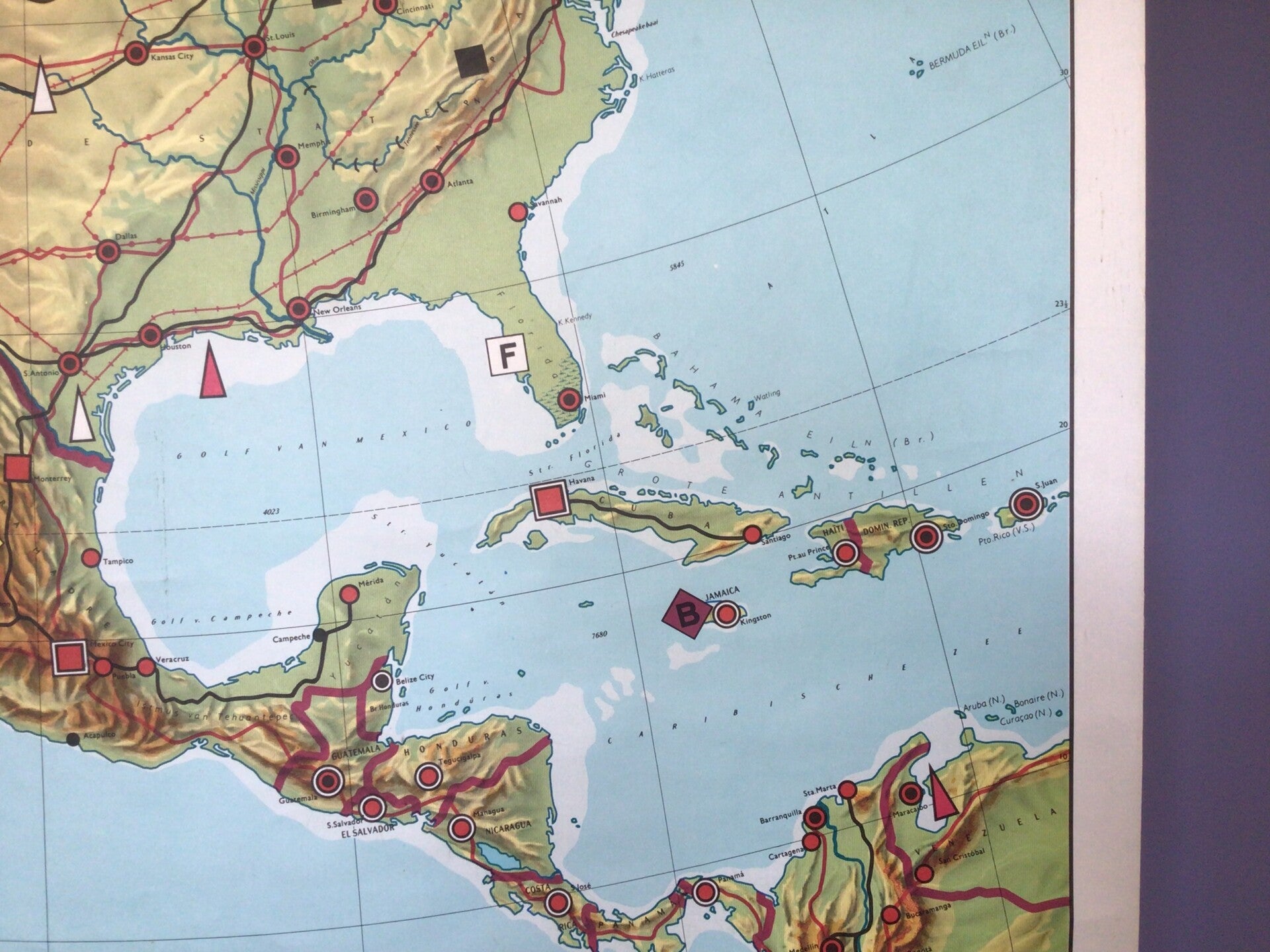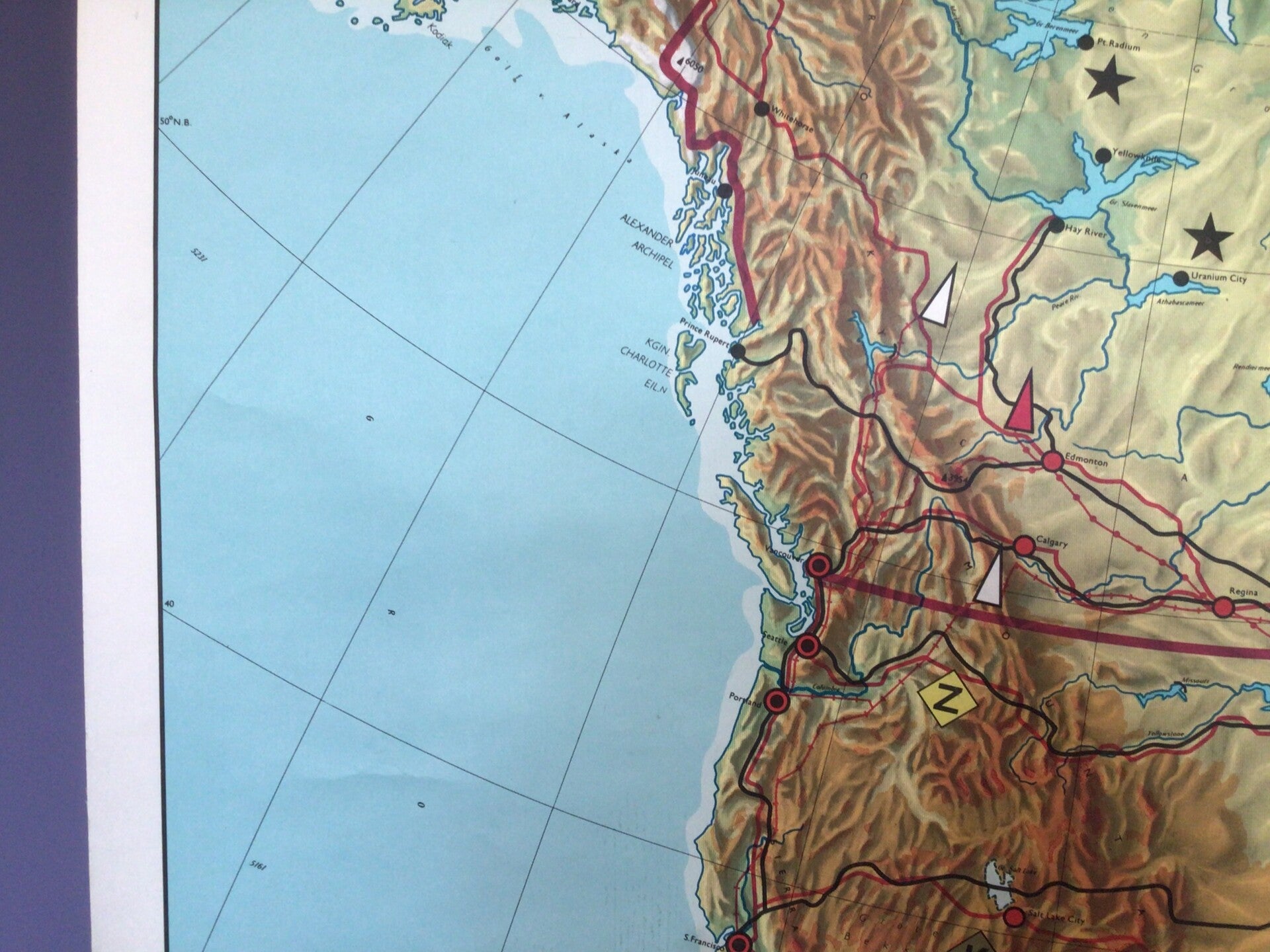 Mooie gedetailleerde kaart uit 1970 van Geogr. Cart. Inst. Wolters-Noordhoff op linnen en oprolbaar op stokken.